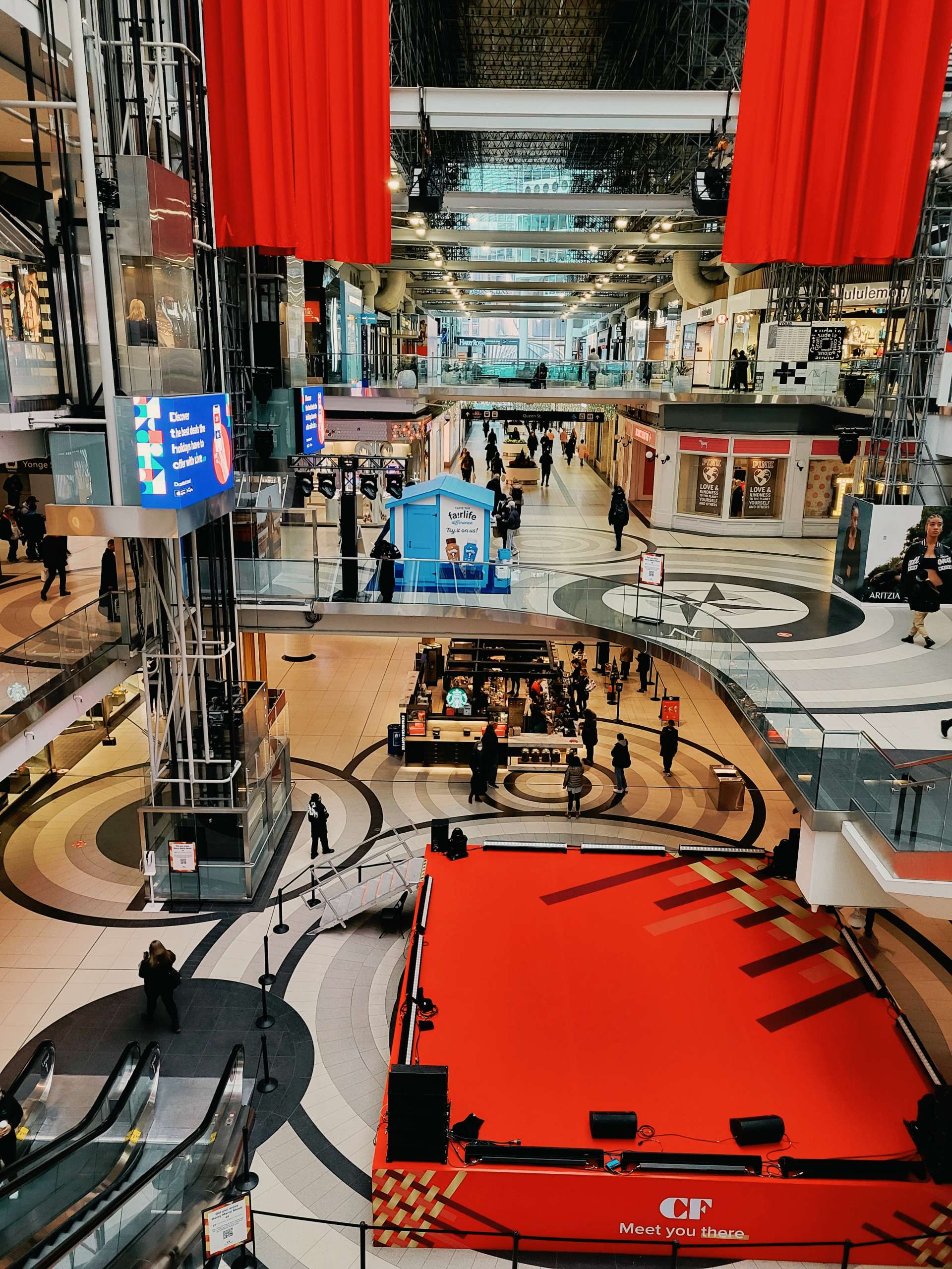 モントリオールのイートンセンターも吹き抜けになっていますが、トロントの方が広々として開放感があります。