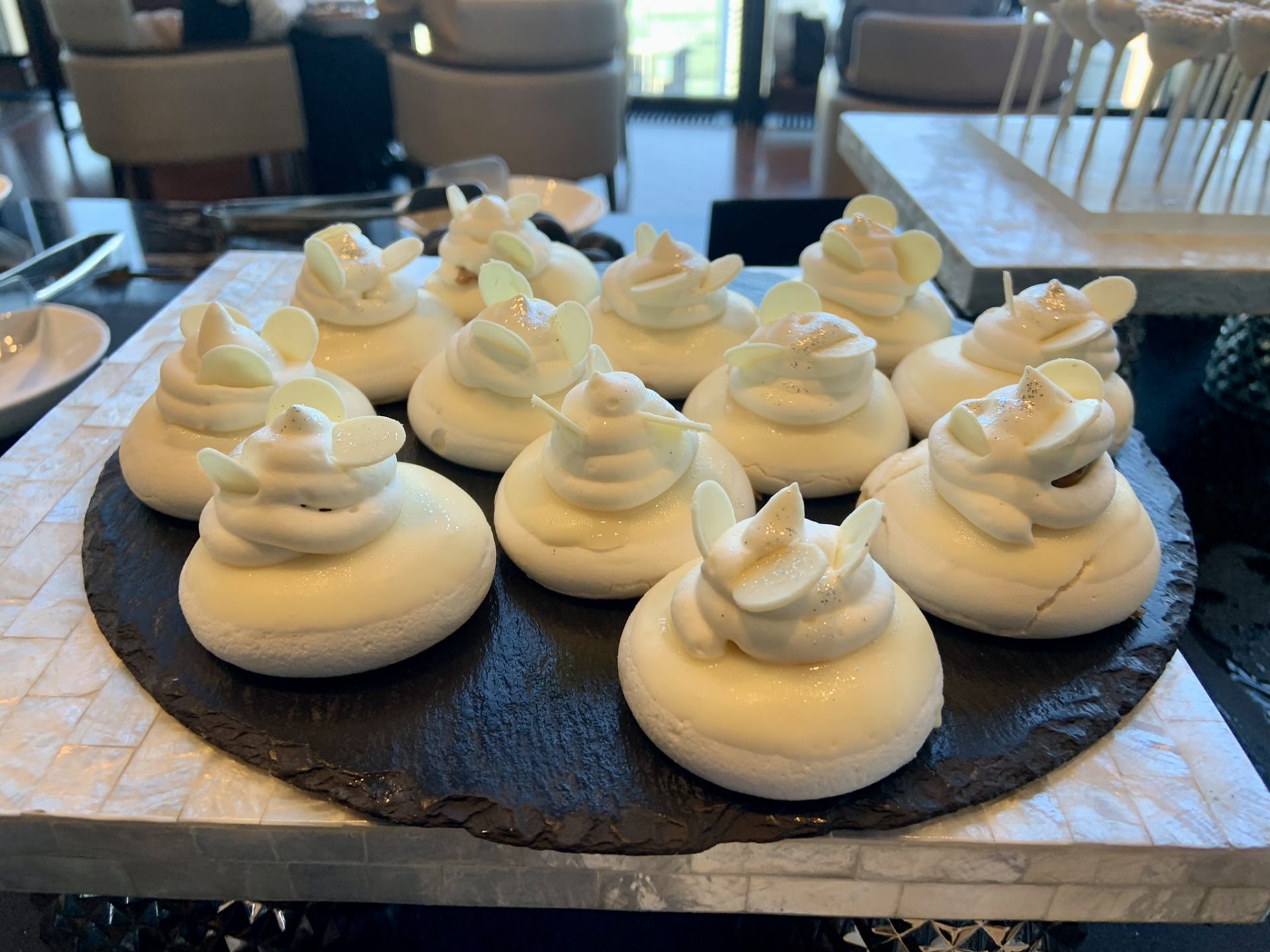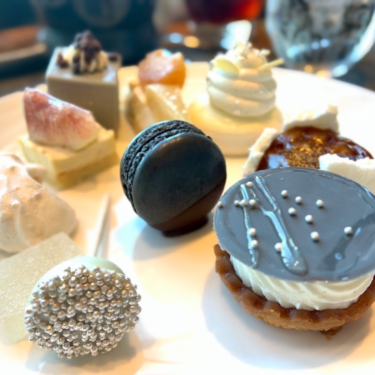 シルバーと落ち着いたグレー、シンプルな白と黒で統一されたスイーツたち、寒色系なのに、心ときめくほど、お洒落。一部ご紹介します。