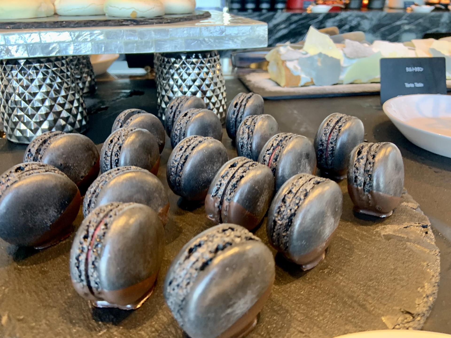 美しく光輝くブラック。マカロンの食感が心地よい。