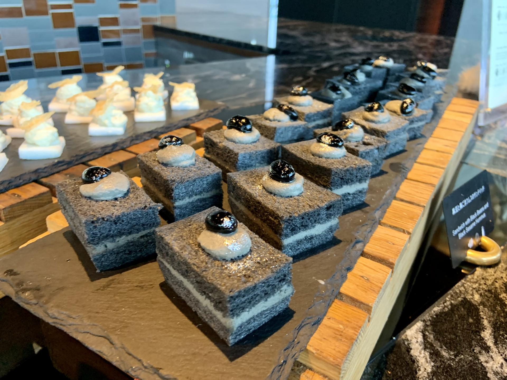 可愛いスイーツみたいな顔して並んでいます。栄養価の高い黒豆と黒ゴマのフムスサンド。中東料理も、日本人の口に上手くアレンジされています。