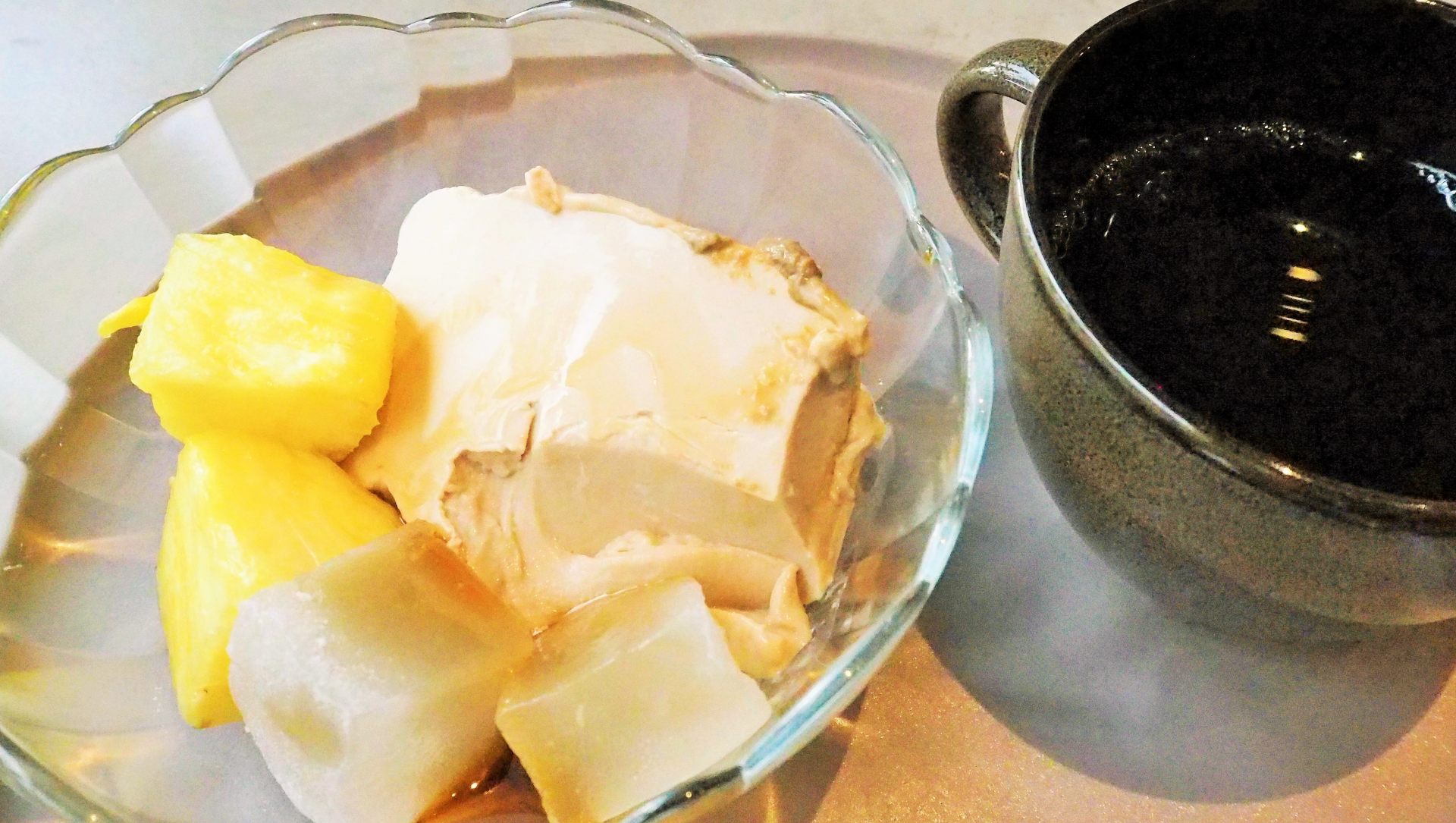 右側のお椀には「金沢おでん」を入れています。車麩や赤巻き、ふかし、源助大根などの加賀野菜といった、金沢にゆかりのある具材を使っているのが特徴です。車麩も赤巻きも岡山では馴染みがないのですがお出汁がしっかりと染みて美味しくいただきました。