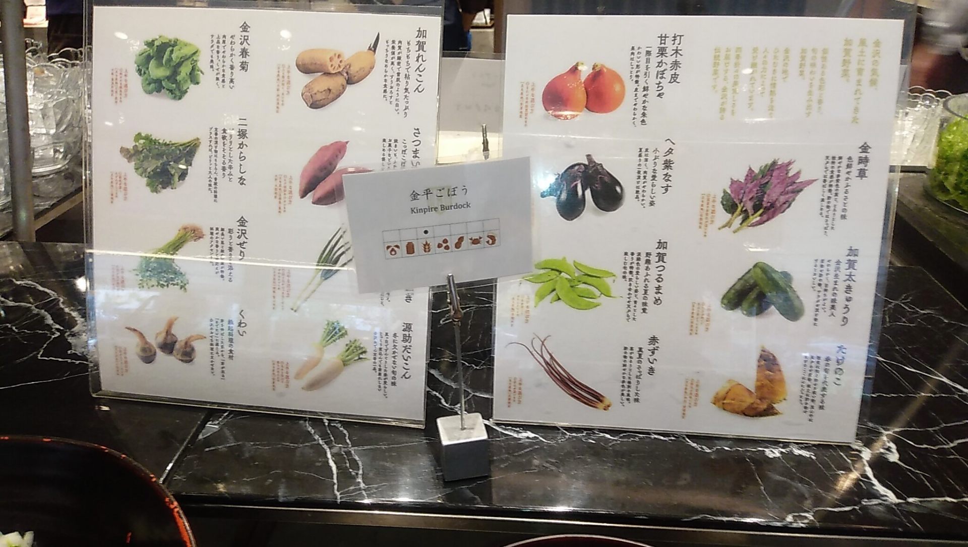 お惣菜コーナーにあった加賀野菜と呼ばれる野菜の一覧表です。