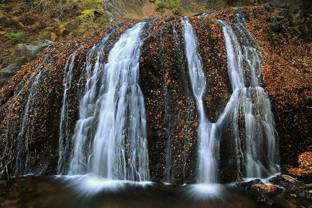 岩塊に積もる落葉がいいアクセントなっています。なお、見た目上の大部分は段瀑の最下段となります。