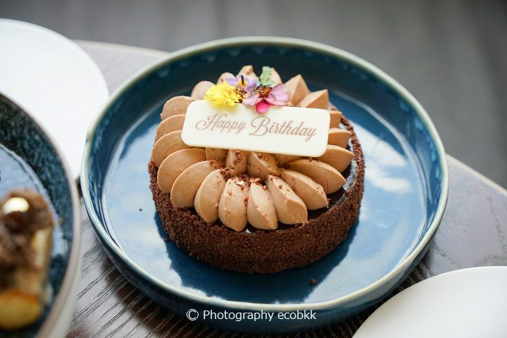 トップのチョコレートクリームが柔らかく、とてもおいしかったです。かわいらしいお花とろうそくまでつけてくれ、感謝感激のサービスでした。そして、スマートフォンを渡して、友達と一緒の写真も、笑顔で撮ってもらえました。大変恐縮でしたが、「ウォルドーフ・アストリア・バンコク(Waldorf Astoria Bangkok)」のスタッフの方々にまでお祝いしてもらえて、とてもよい思い出になりました。この場にて厚くお礼申し上げたいと存じます。
