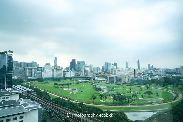 座席によって、BTSの線路や緑豊かなゴルフ場「ロイヤル・バンコク・スポーツクラブ」を一望できたり、遠くに、ショッピングセンター「セントラルワールド」やバイヨークスカイタワーまで見える席もありました。