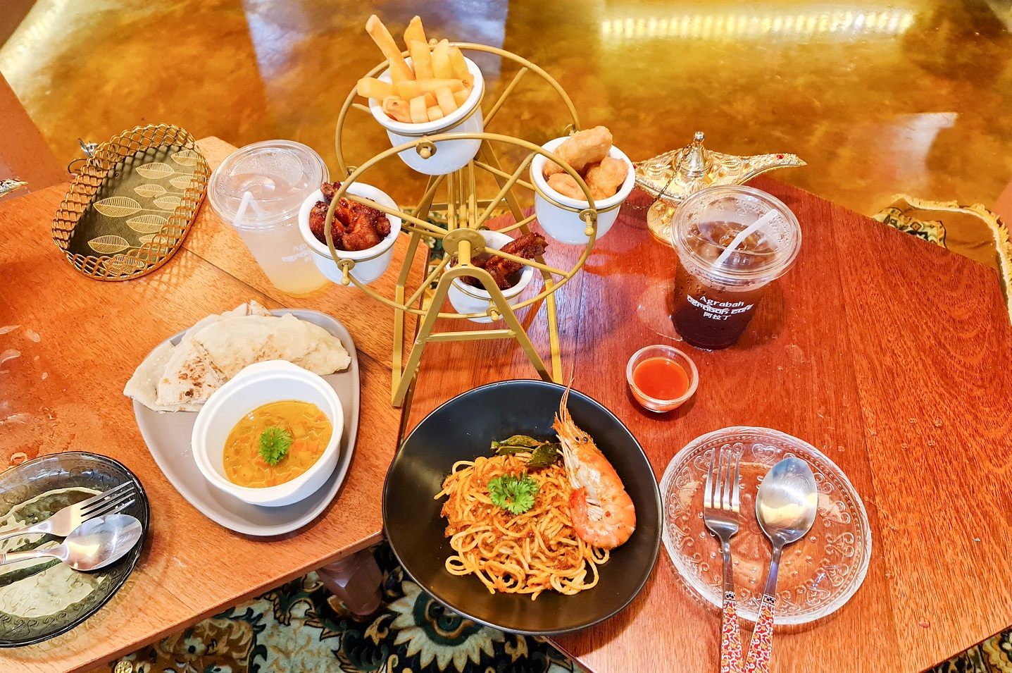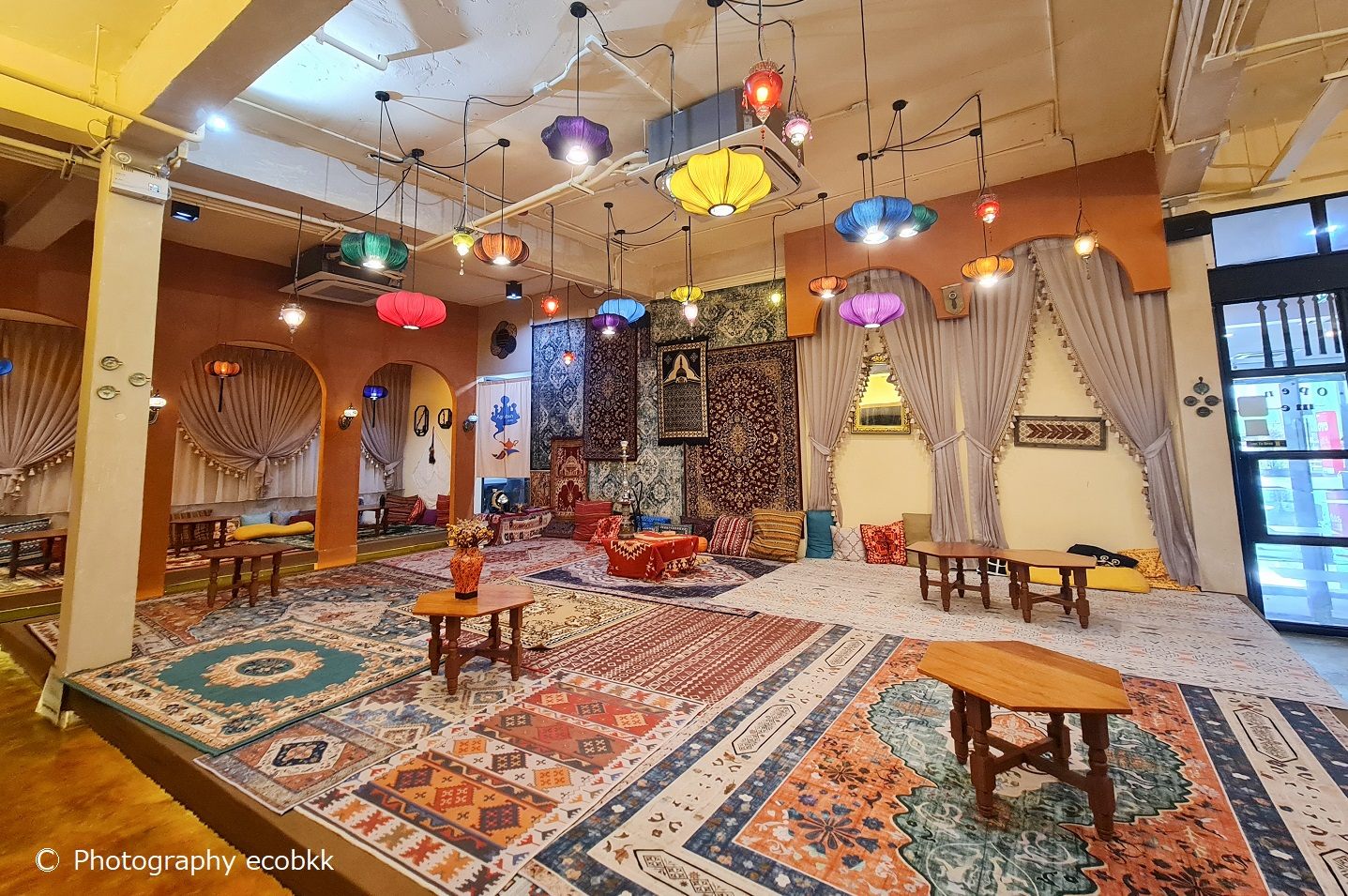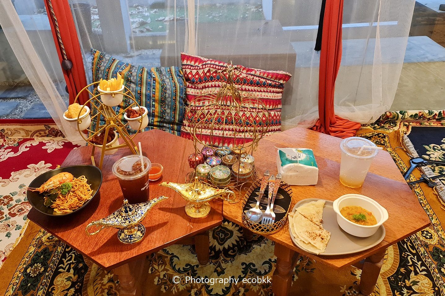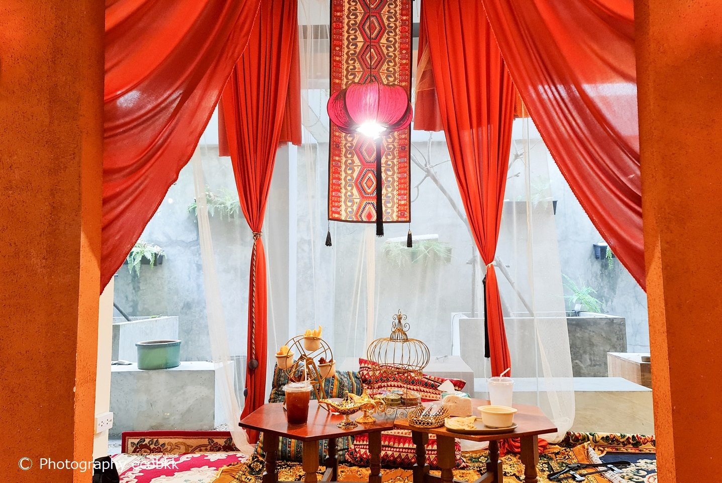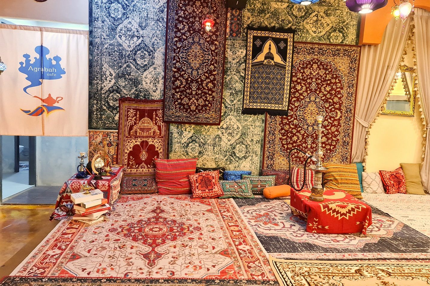 店名にある「アグラバー」とは、『アラビアン・ナイト』に出てくる架空の地。物語では、インドにあるアーグラという地がモデルとなっているようですが、2020年8月にオープンした「アグラバーカフェ(Agrabah Cafe)」は、トルコとモロッコのスタイルを取り入れ、物語の中にいるような雰囲気を味わうことができるカフェで、どこに座っても素敵な写真が撮れるというのがお店のうりのようです。
