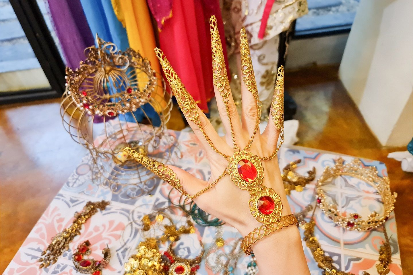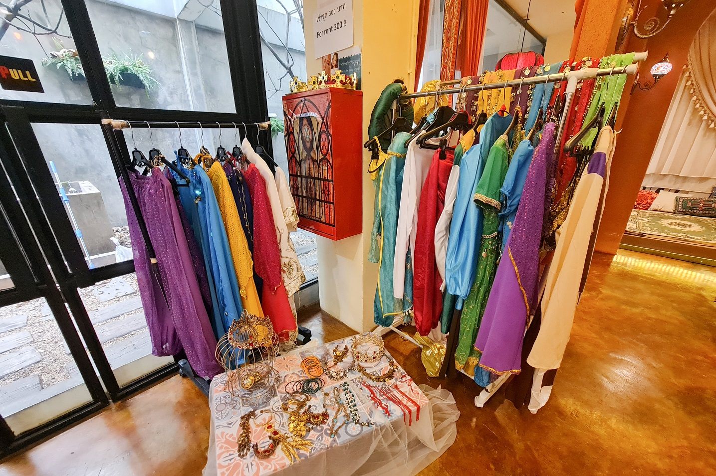 衣装(1着300バーツ)や装飾品もレンタル可能なので、いつもと違う姿に変身しての写真撮影も楽しめます。衣装をレンタルしなくても、絨毯やクッション、カーテン、照明やランプ、食器やカトラリー等全てが『アラビアン・ナイト』を連想するような内装で統一されていますので、普段はなかなか感じられない雰囲気にテンションの上がる方も少なくないでしょう。