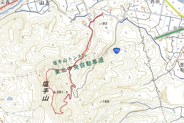 塩手山トンネル西側より↑(向かって左が北峰)山体には、福島~相馬間を繋ぐ東北中央道の塩手山トンネルが貫いています。