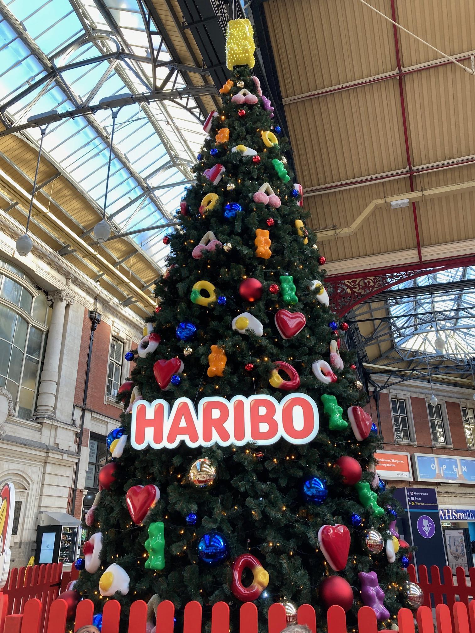 先日ロンドンのヴィクトリア駅に行ったら、そのハリボーのクリスマス・ツリーが出現していました!
