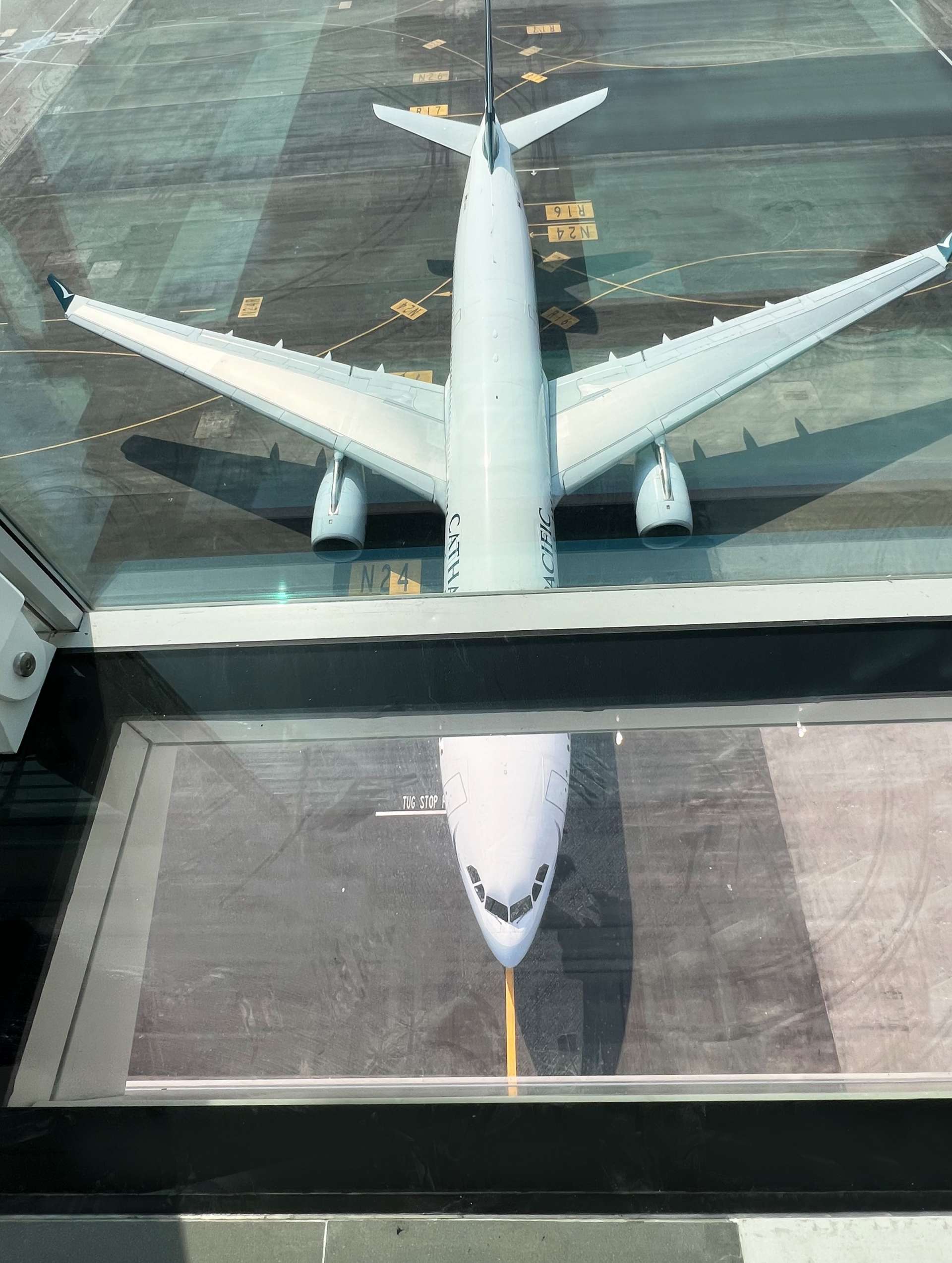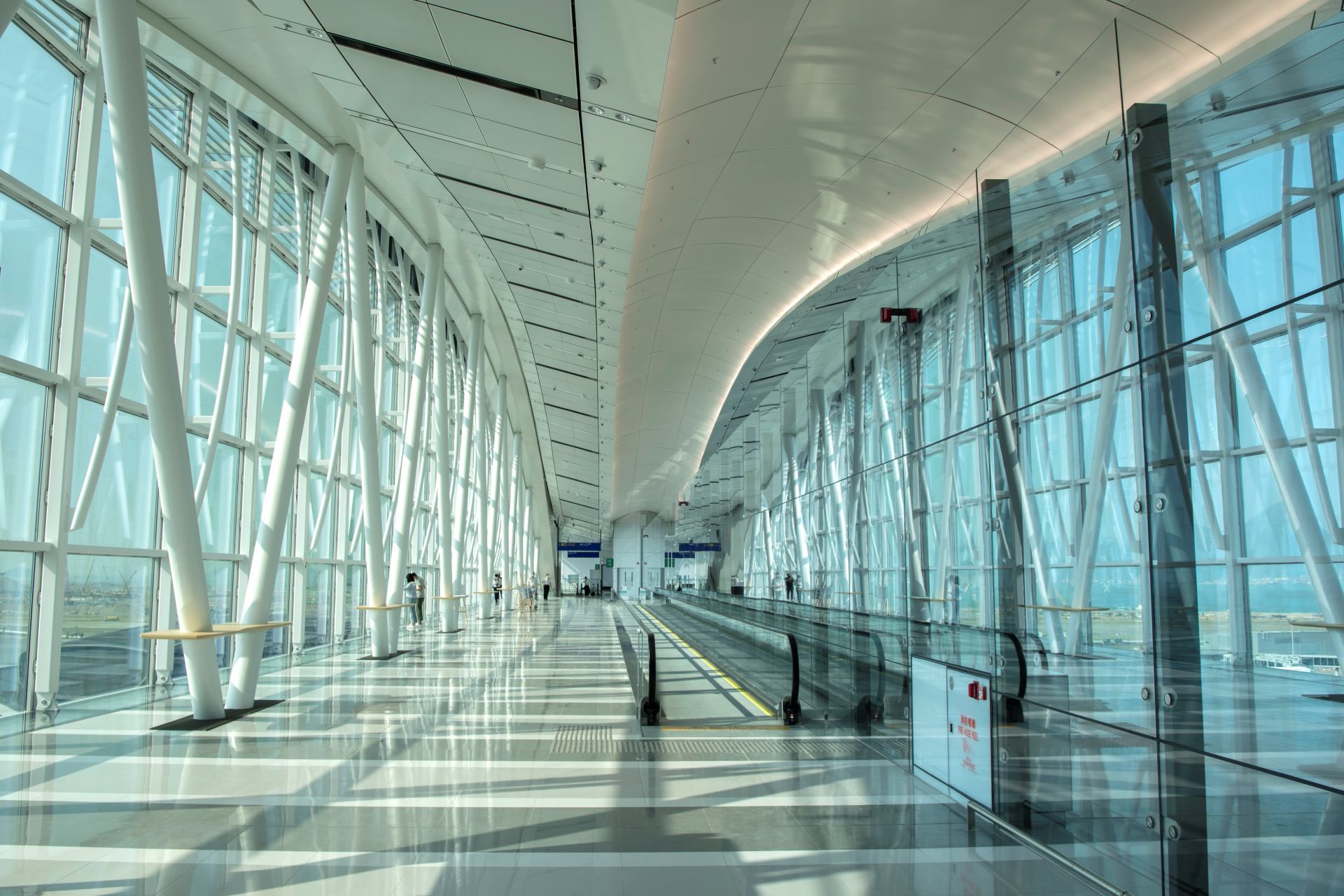 壁は基本的ガラス張りで、床の一部もガラス張りとなっています。飛行機が天際走廊の下を通る時、飛行機を上から見ることのできる世界でも珍しい空港となりました。インスタ映えを意識してか、展望台もあります。