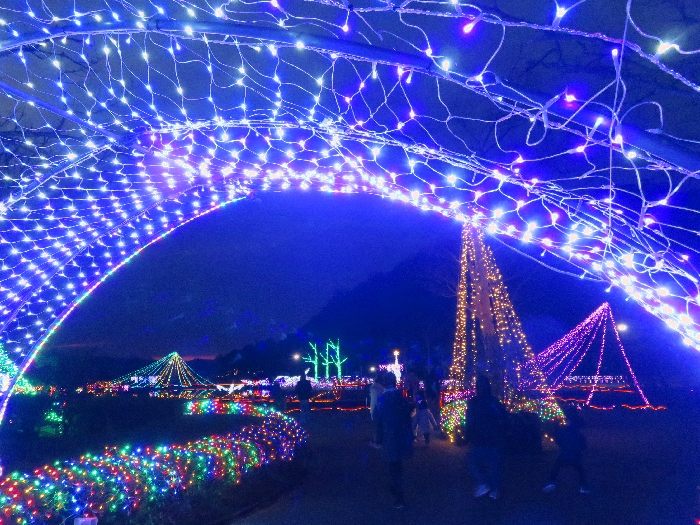 「あやめ公園」内では、6万5000球のLEDを使った幻想的な光の世界が広がって気持ちも高まります。