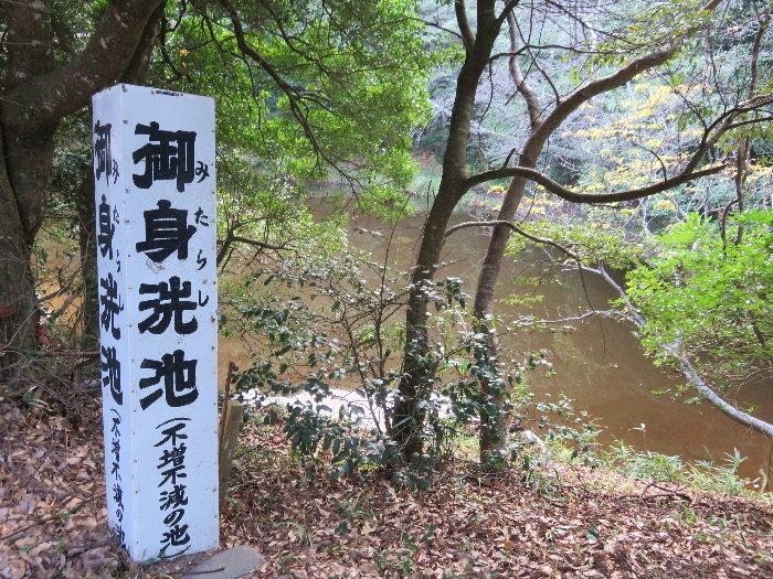 うさぎが傷を洗い、治療したといわれる「御身洗(みたらし)池」があるんですが、季節を問わず水位が一定のため、不減不増の池といわれています。また、うさぎが「御手洗池」で傷を洗った後、ガマの穂を敷いてゴロゴロ転がって肌を治しましたが境内にガマを見ることができますので是非チェケラください。