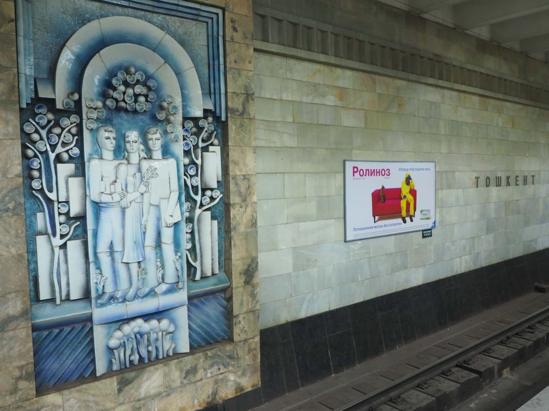 すぐ近くには地下鉄タシケント駅があり、メトロに接続しています。以前の記事でさんざんタシケントメトロの魅力を述べましたが(19. 地下に広がる美の空間!タシケントのおすすめ地下鉄駅ベスト5)、タシケント駅もホーム壁面が陶器で彩られた素晴らしい駅なので、ぜひ鑑賞してみてください。