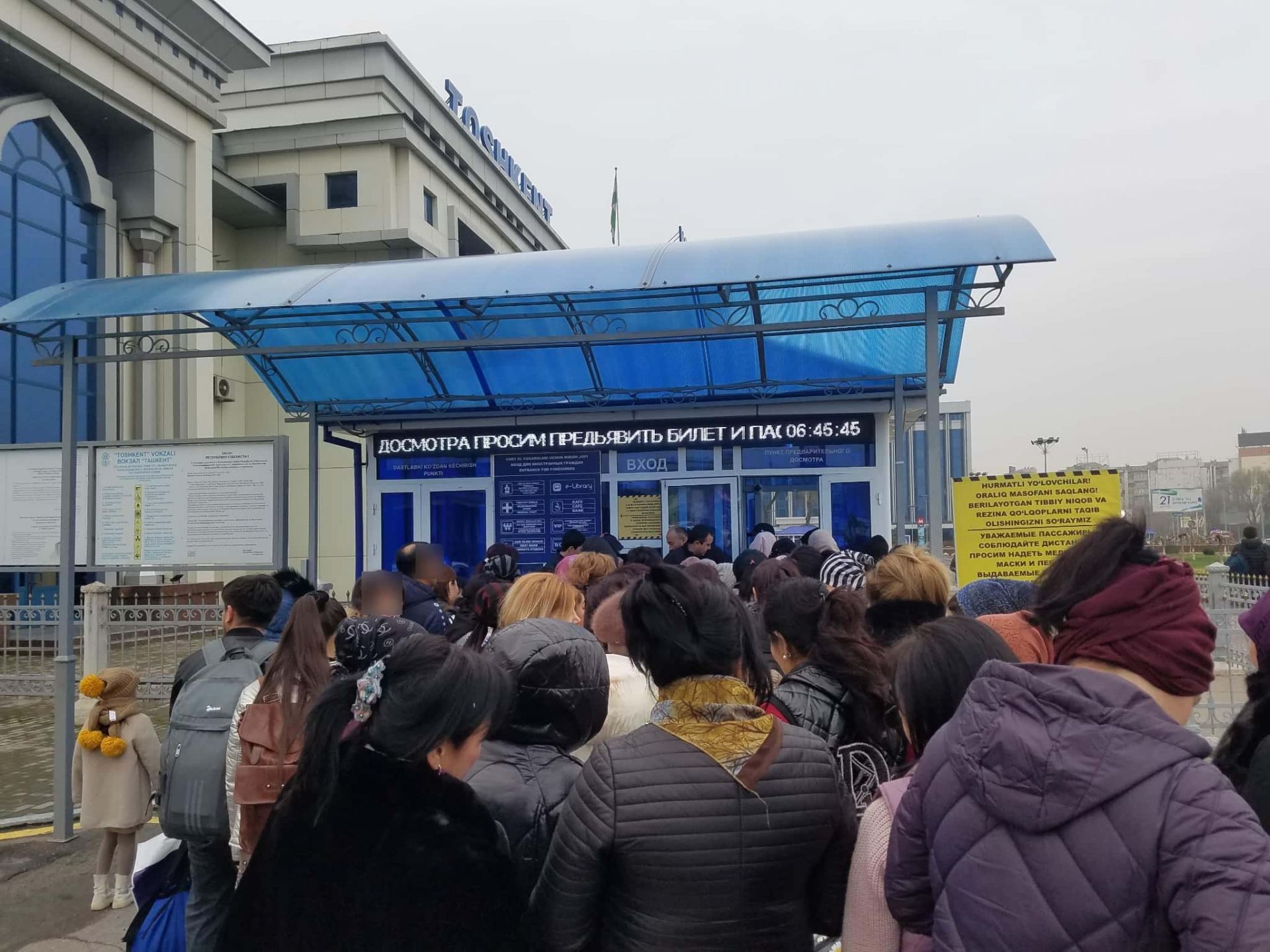それでは列車に乗ってみましょう。タシケント駅だけでなく、この国の鉄道駅ではだいたいどこも以下の流れで列車に乗車することになります。