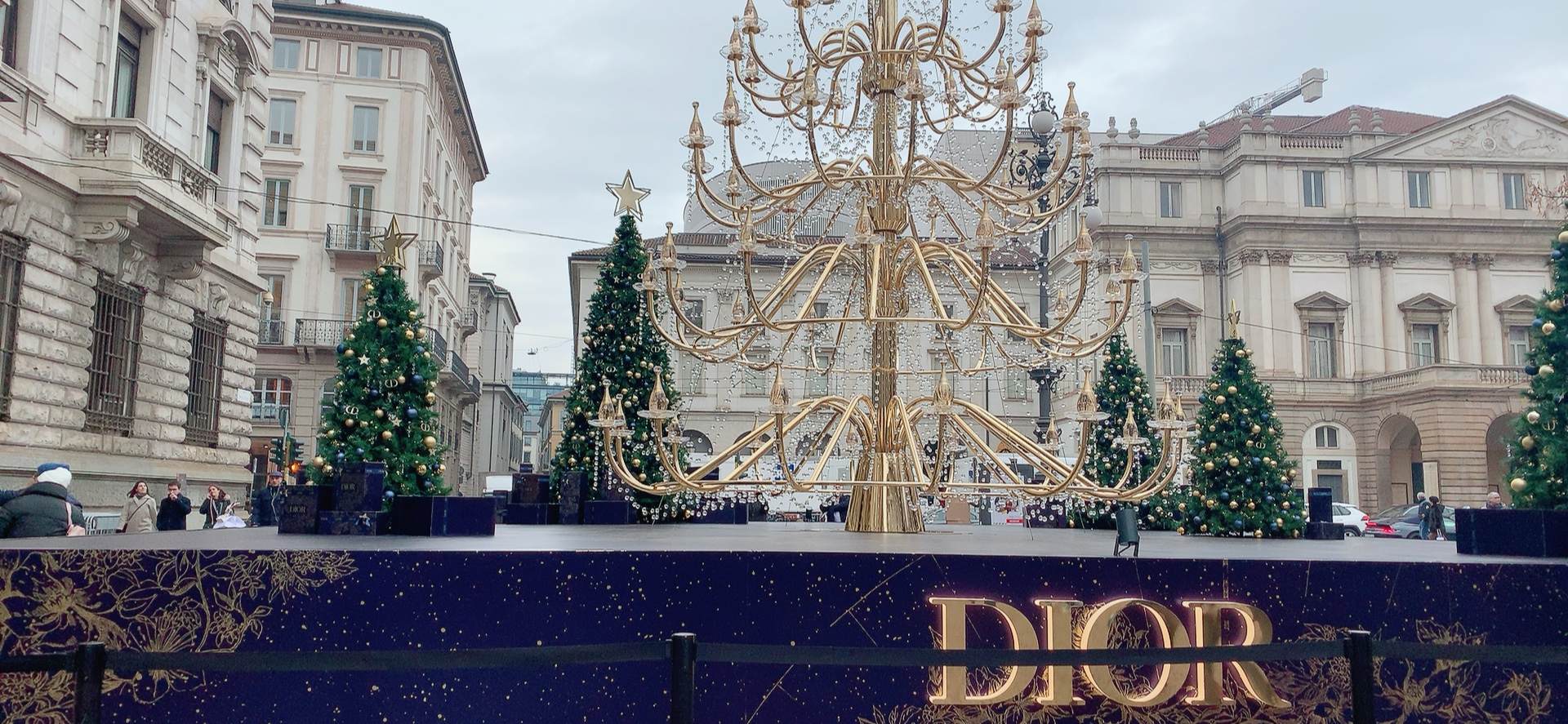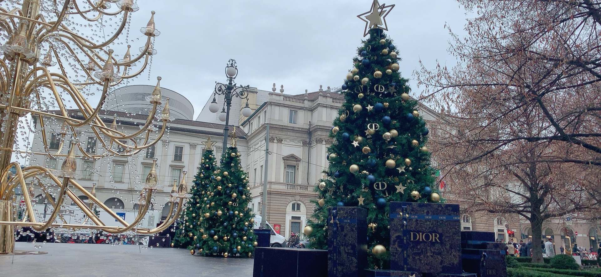 スカラ座前にはいつも異なるブランドのツリーが登場します。
