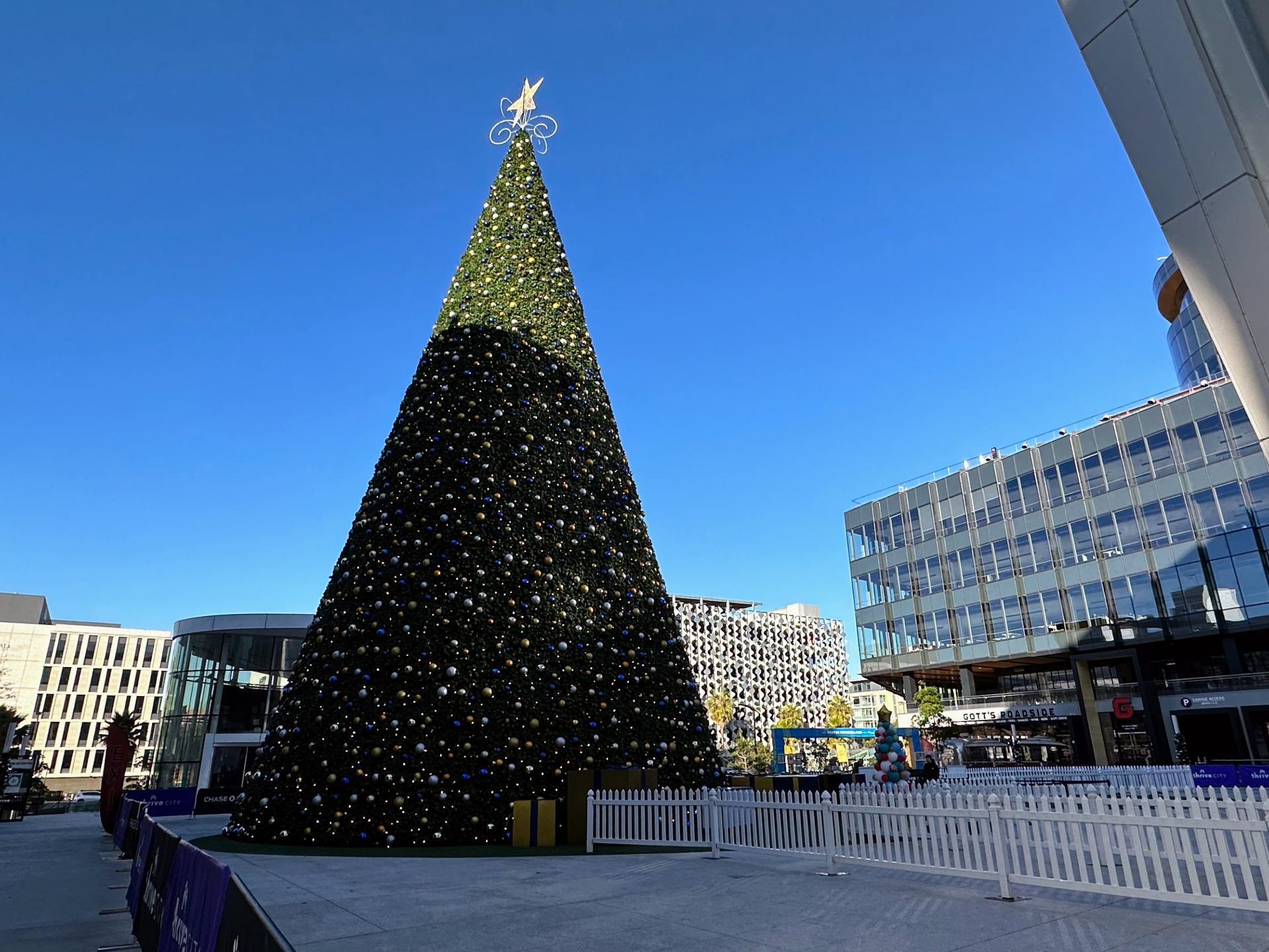 去年と同じように、今年も街のあちらこちらで華やかなクリスマスツリーがお目見えしています。クリスマスツリーといえば、有名なユニオンスクエアはもちろん、チェースセンターにも巨大なツリーが登場し、記念写真を撮ることが可能です。市内は例年と変わりなく、華やかな雰囲気です。