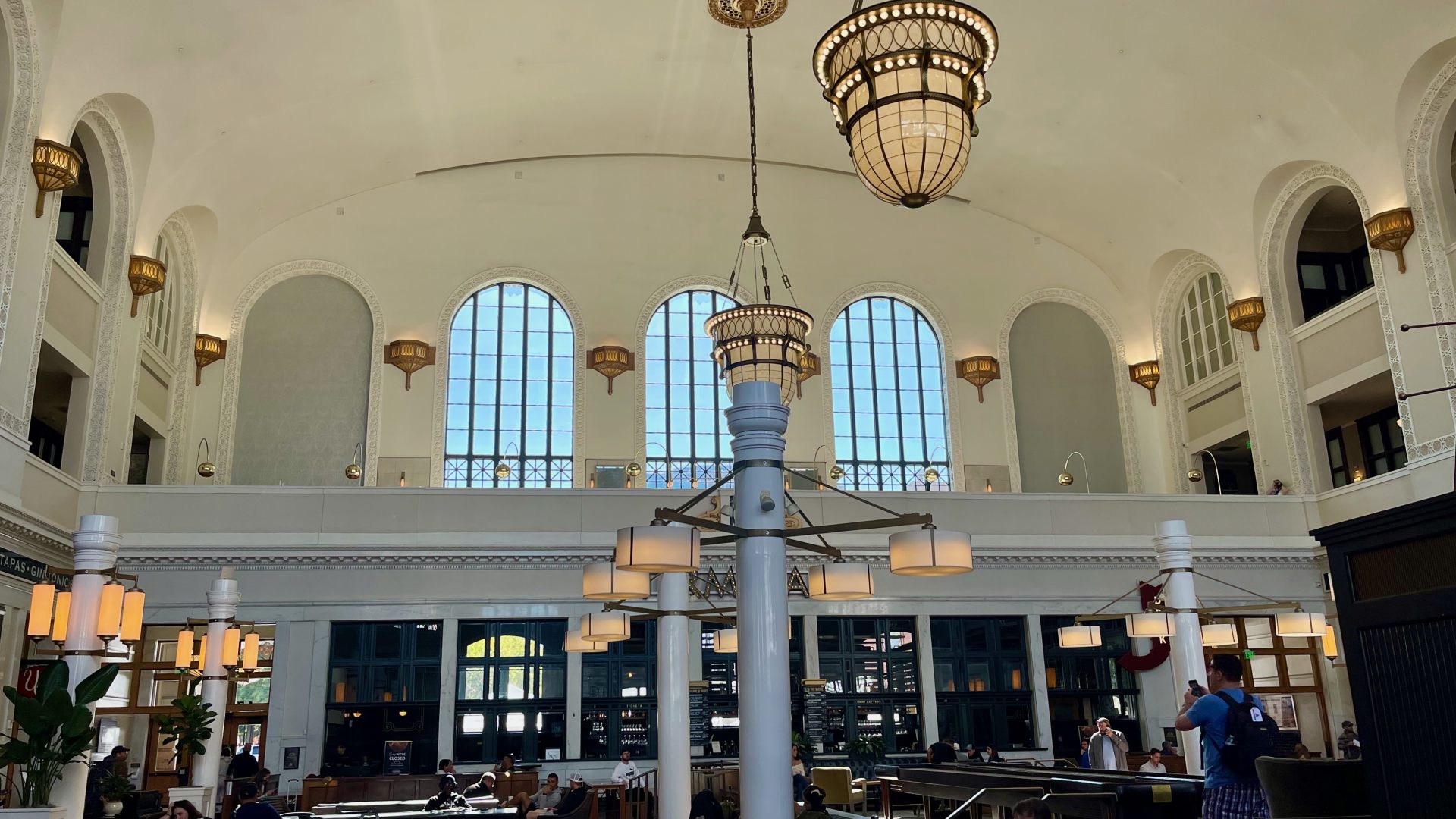 中の入った瞬間、息を飲むほど美しいユニオン駅舎内でした。イメージを崩さない補修技術とセンス。アメリカの鉄道時代の思い出と今のショップやカフェが見事に調和していました。ここは、アムトラックのカリフォルニア・ゼファー®︎の駅でもあって、この駅を見ると列車の旅もしてみたいと思います。