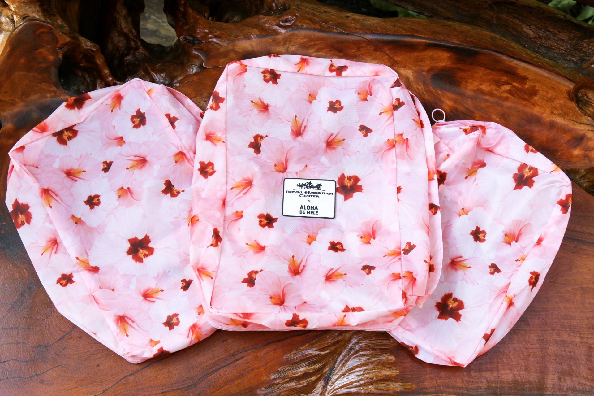 そして、ロイヤル・ハワイアン・センターからも素敵なギフトがあります。2023年1月8までの期間、センター内のショップやレストランで$800以上支払うと、ハワイ出身のアーティスト「Aloha de Mele」のジェーティー・オヘリオさんがデザインしたセンターオリジナルの旅行に便利なパッキングキューブをプレゼント中です。利用レシート(複数日の合算可)を1階のヘルモアハレ・ゲストサービスまで持っていくとプレゼントをもらえます。プレゼントはお一人様一日につき1つまで。在庫がなくなり次第終了するのでお早めに。ゲストサービスは、毎日午前11時から午後8時まで営業しています。