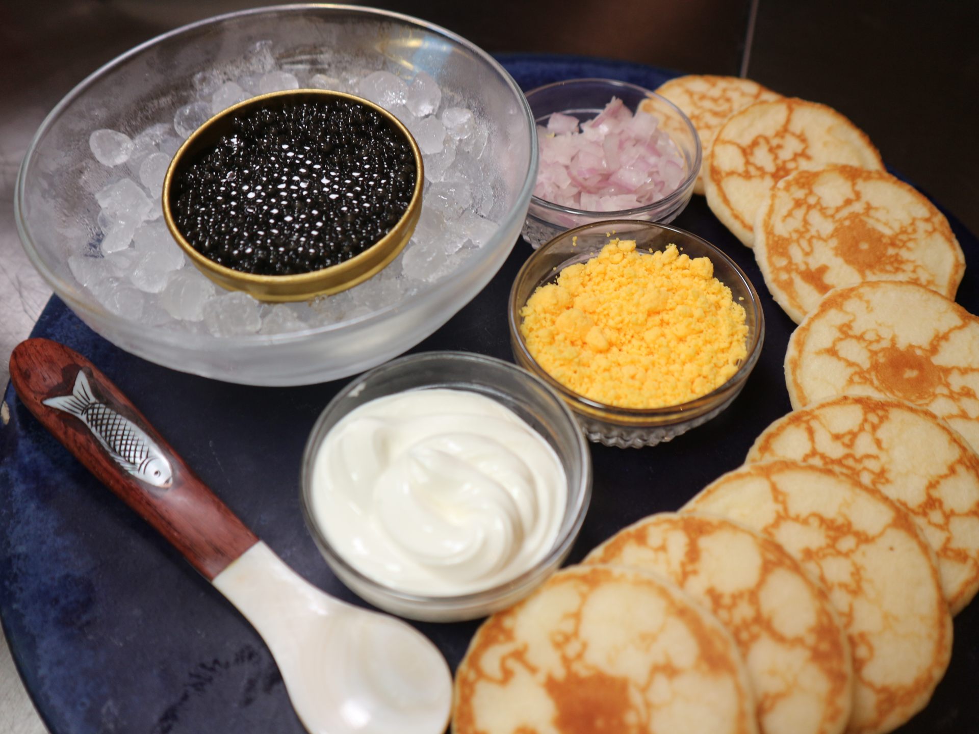 今回、新しくキャビアがメニューに仲間入りしました。ロイヤルロシアンキャビアとウルグアイ産のブラックパールキャビアがあります。