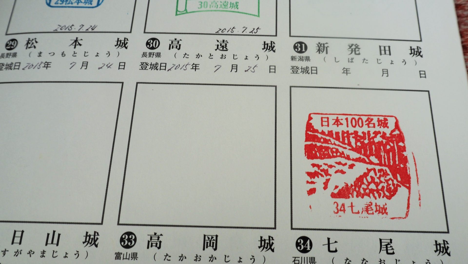 あいにく資料館は休館日でしたが、入り口の前に日本100名城のスタンプがあったので捺印します。
