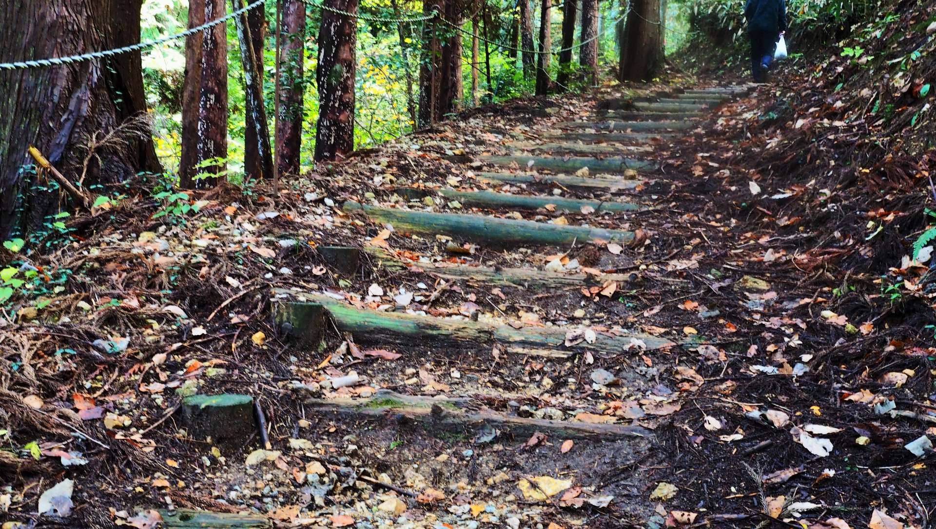 三の丸に登る長い階段です。このあたりから傾斜が増していき、もう足ががたがたです。