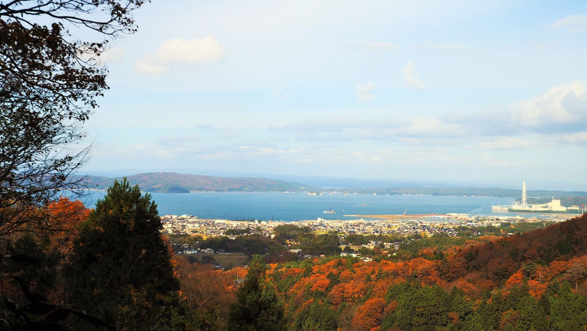 本丸まであと1.1㌔程の場所で見晴らしのいい場所がありました。お天気が良く、眼下に七尾湾が見下ろせ能登島もクリアに見渡せました。