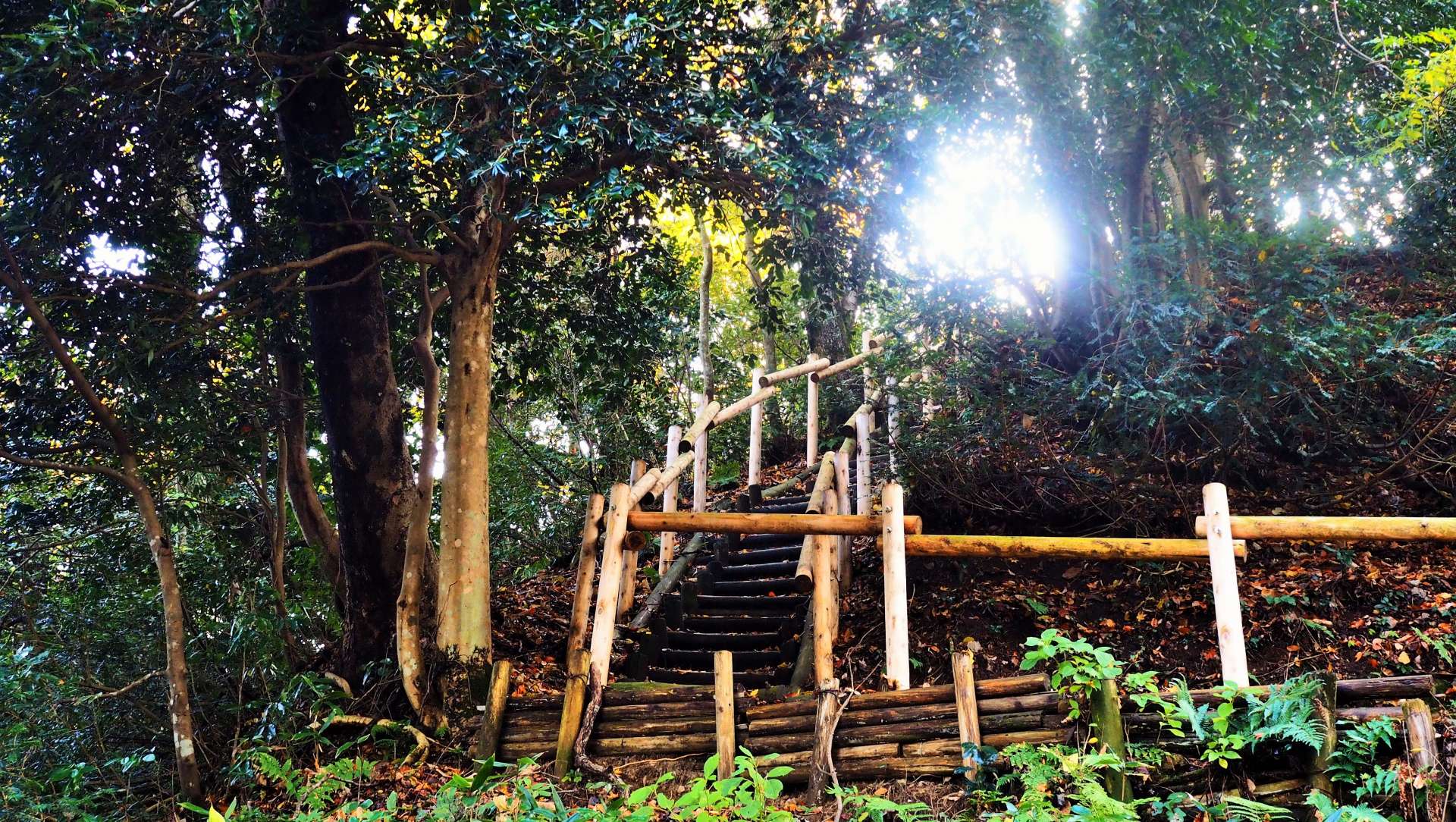 「三の丸」から一旦堀切へ下り、「二の丸」へは更に急な階段を登っていきます。階段は回り込んでいて、梯子段を登っているような気になってきます。これぞ山城ですね。