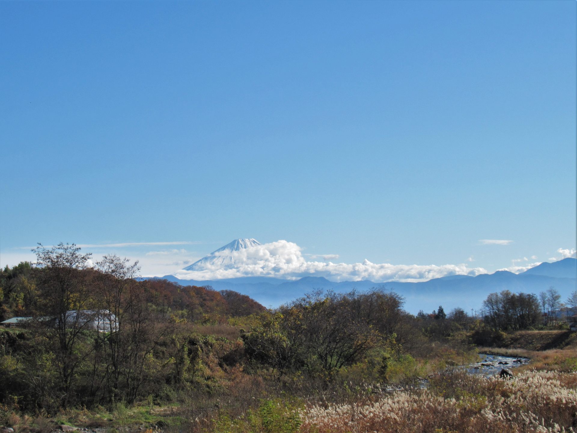 同じ場所で11月21日、こんな写真も撮りました。雲とたわむれる富士山。雲がそのときどきの季節や風を感じさせるいい脇役を務めてくれていますね。