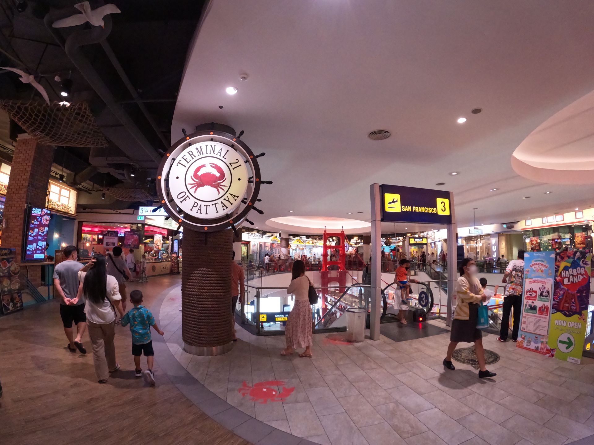 Terminal21, Pattayaは、2018年11月に出来たパタヤで人気のショッピングモールです。ホテルのコンシェルジェに訊いたら真っ先に勧められました。飛行場のターミナルをイメージしており、入口は「GATE」と呼ばれ、各階は世界の都市をイメージしています。4階(3rd floor)は、私の住むサンフランシスコで、サンフランシスコの名所が随所に再現されていました。