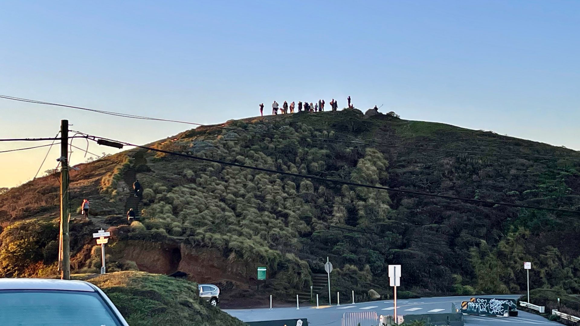 元旦の朝、6:45の気温8℃、風は穏やかでした。日の出時間は7:25。とにかく初日の出に間に合うように急いだ先は2年ぶりのツインピークスのクリスマスポイントです。