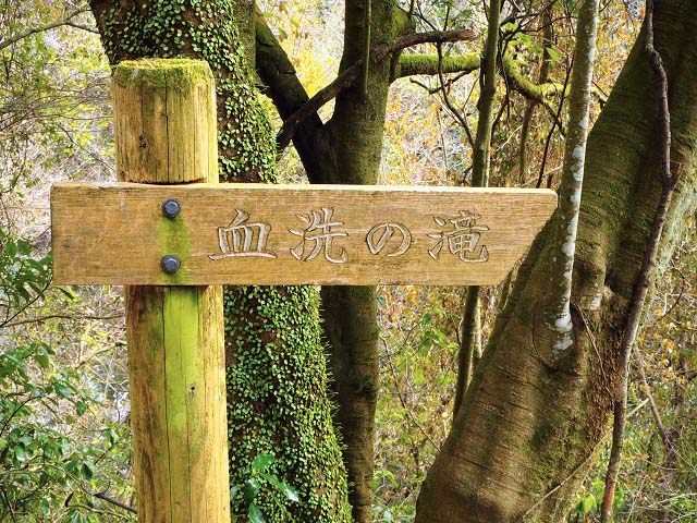 八岐大蛇を退治した素戔嗚尊が、血に染まった神剣、蛇之麁正(おろちのあらまさ)についた血を洗い流し、身を清めた滝が「石上布都魂神社」から数㌔離れた場所にあります。この滝の名前を「血洗いの滝」といいます。