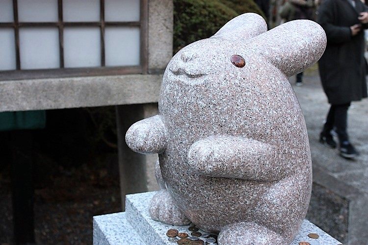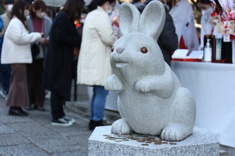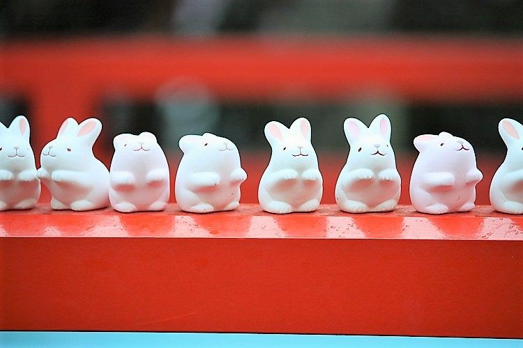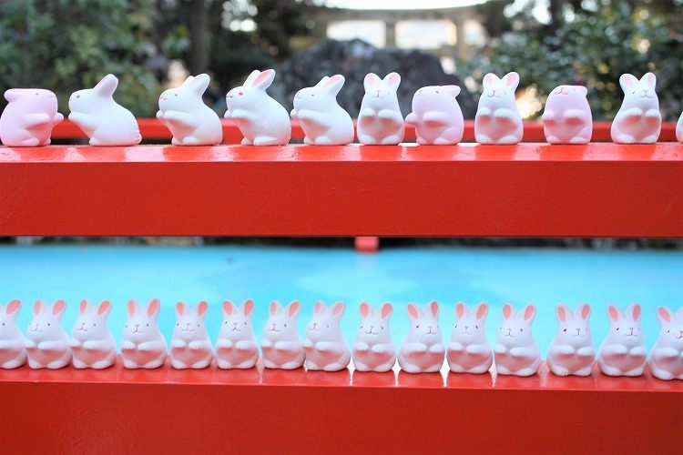 境内を歩くと、沢山の「うさぎ」の像やモチーフが潜んでいますから、