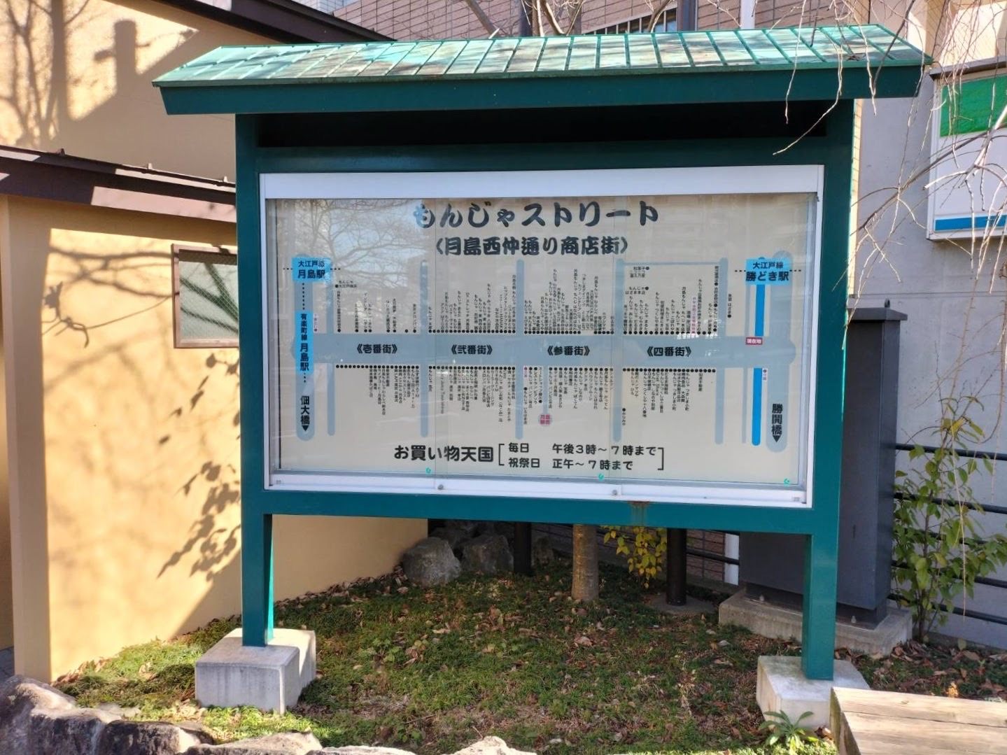 2022年、年の瀬に訪れた築地(関連記事)の新鮮な寿司ネタの魅力にも抗い難かったですが、ちょうど近くにある月島のもんじゃも捨て難いということで、築地で買い物を楽しんだあとは昼食をとるため、歩いて月島に向かいました。
