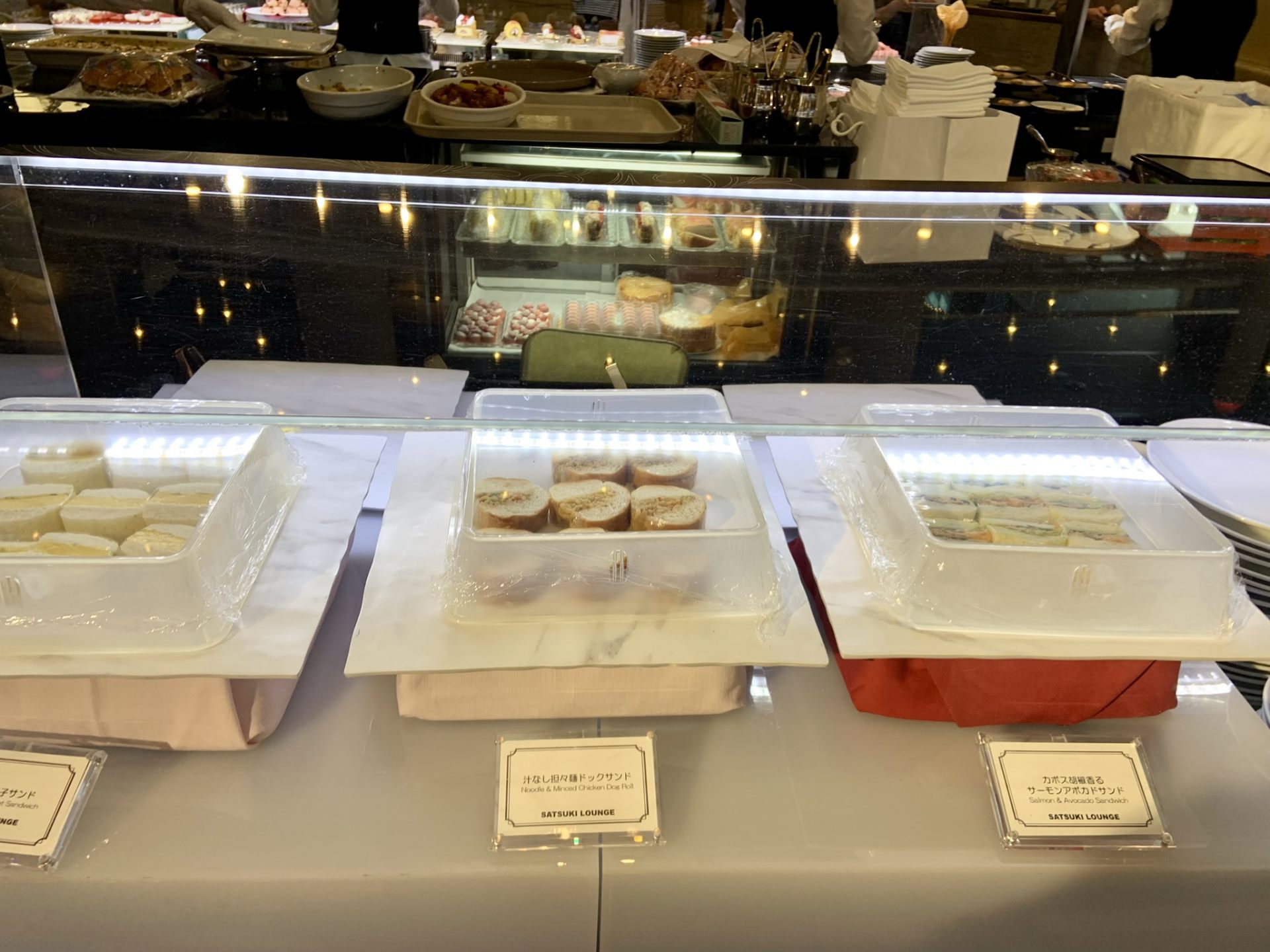 お皿の上は、白身魚と小柱の緑グラタン、黒毛和牛のビーフシチュー、本日のっシェフおすすめ麺料理、ポークカツサンドどれも人気のメニューです。特にホテルニューオータニ大阪特製ポークカツサンドは筆者は大好きなので、出会えて良かったです。