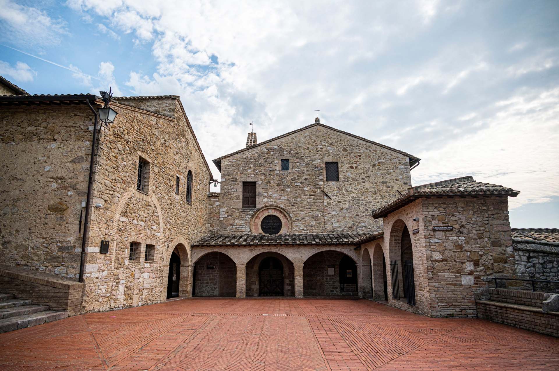 聖人とされる前の若きフランチェスコが神の声を聞き、ひとり石を積みながら修復した古い礼拝堂が残る修道院です。町の南東の端サンタ・キアラ教会から、さらに2㎞以上離れた田園風景のなかにたたずんでいます。