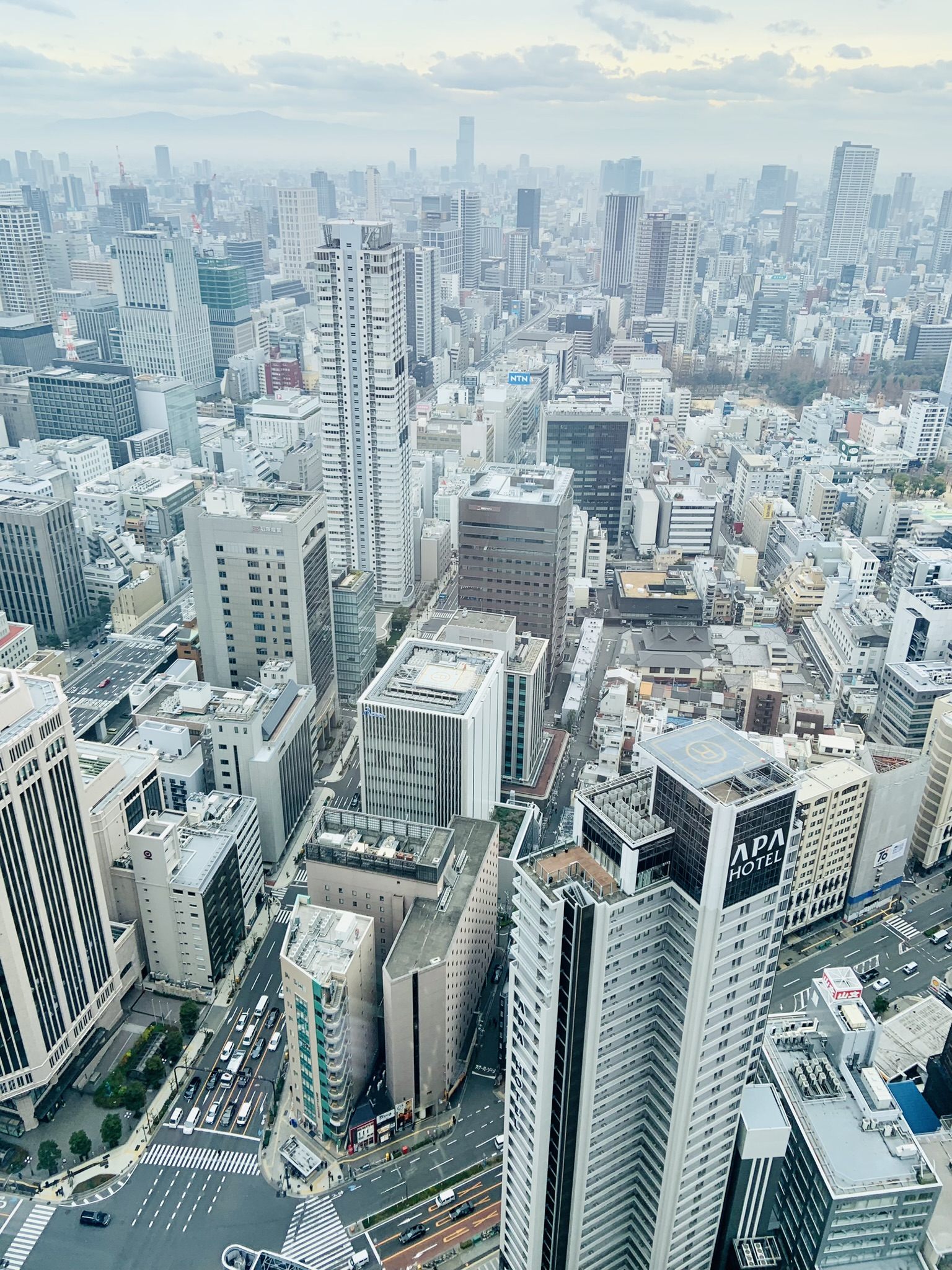 写真はコンラッド大阪40階から南方向を見ている所です。日本一高い建物、あべのハルカスも、正面奥に見えます。