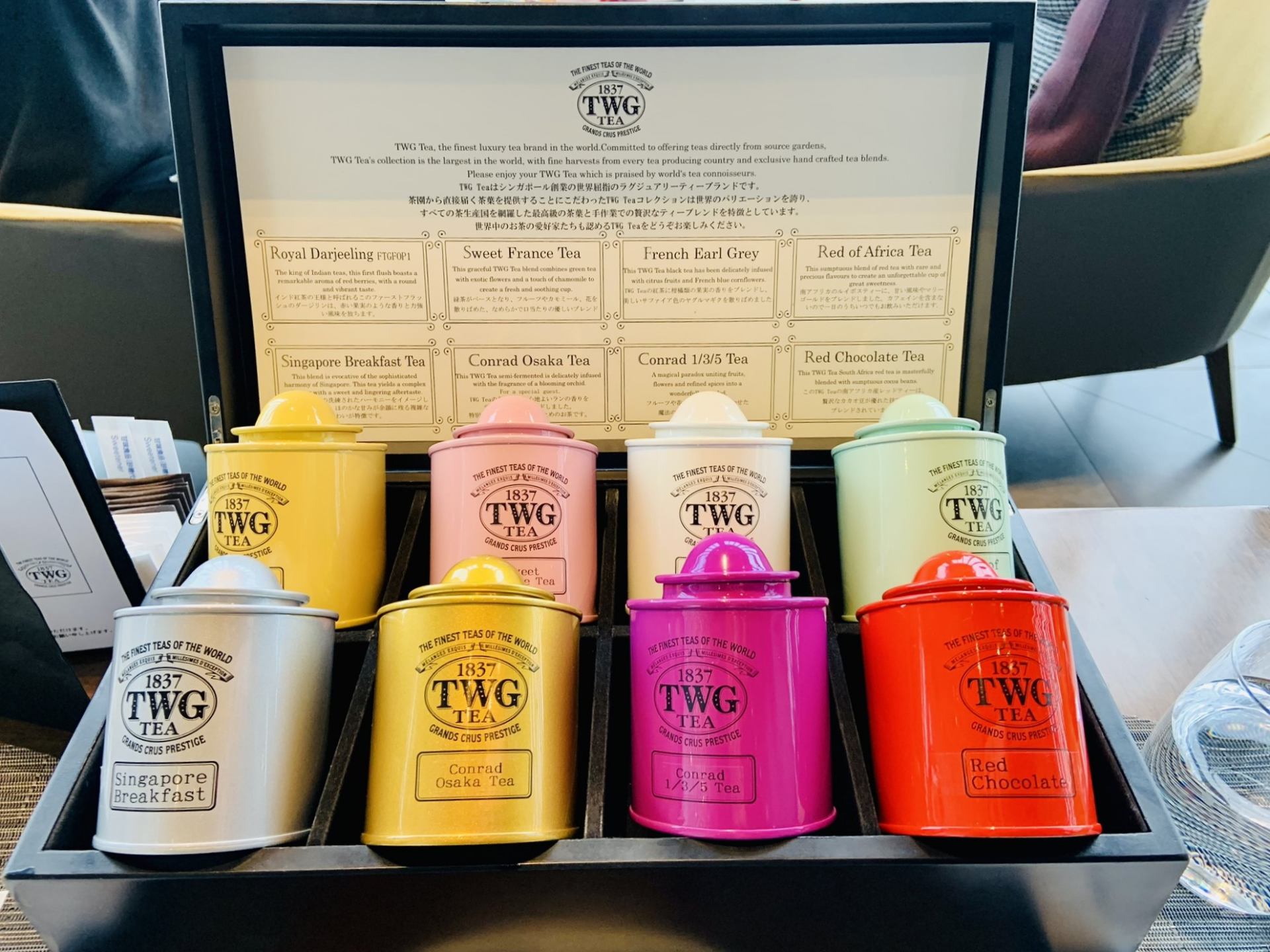 紅茶は嬉しいポットサービスです。今筆者のお気に入りは、Conrad 1//3/5 Tea、華やかなフルーツ、花々、スパイスが組み合わされた香り高い紅茶です。Conrad Osaka Tea もおすすめです。
