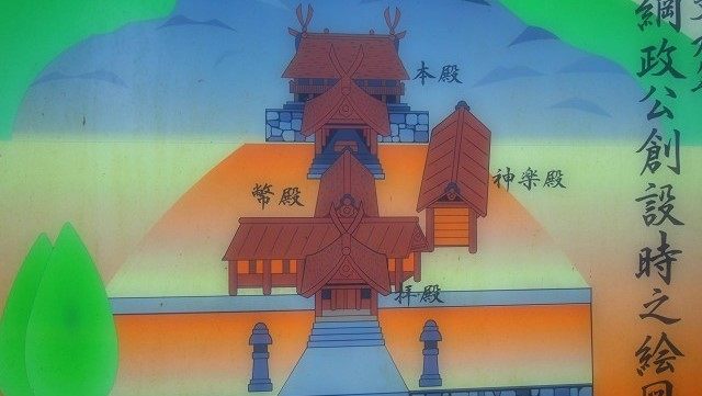 宮司さまのお話では、江戸時代、岡山藩主、池田綱政公が拝殿、幣殿、神楽殿などの建物が創建され、姓も「物部」への復姓を許されたと教えてくださいました。当時の伽藍配置の案内板もありました。