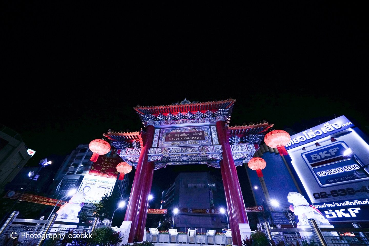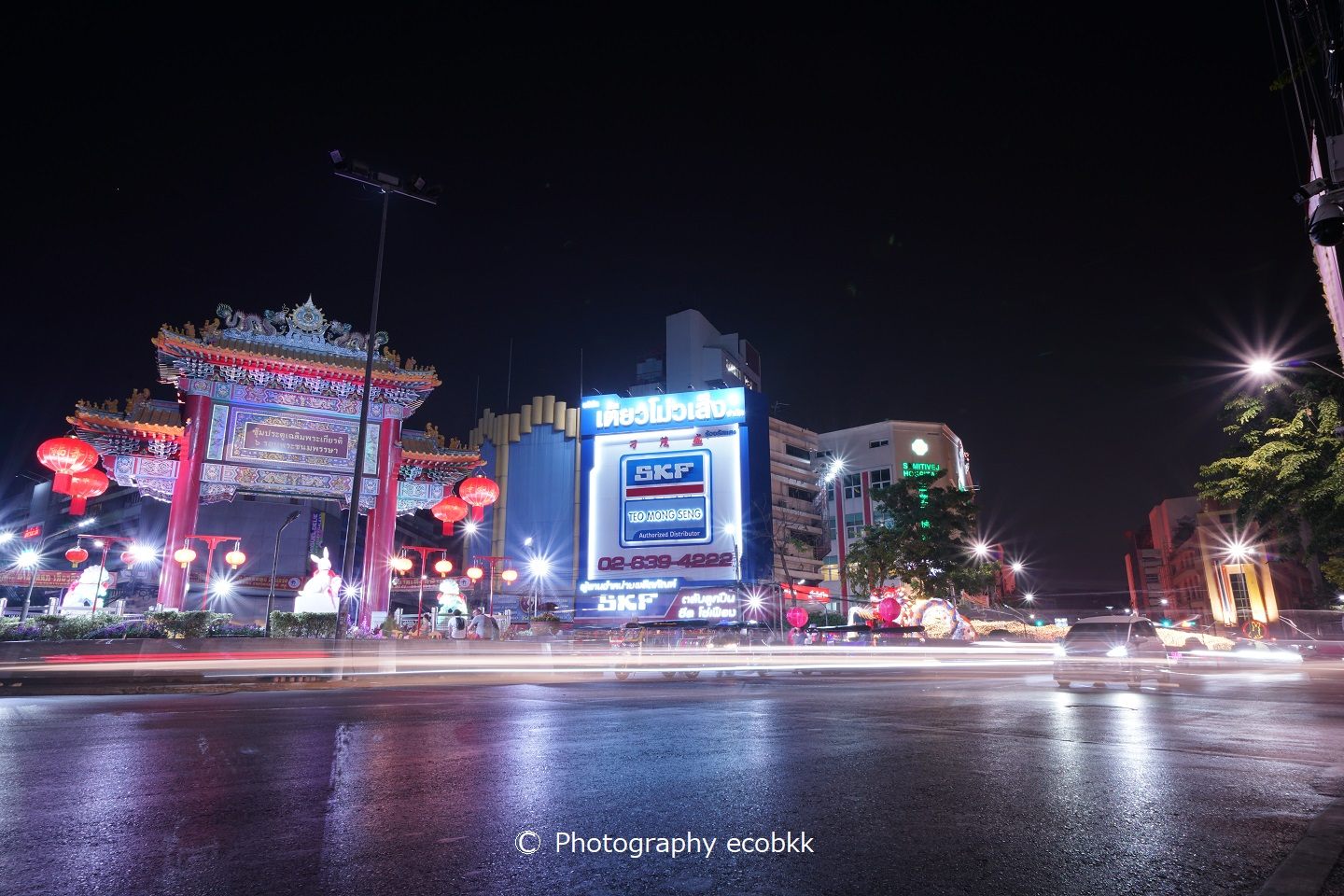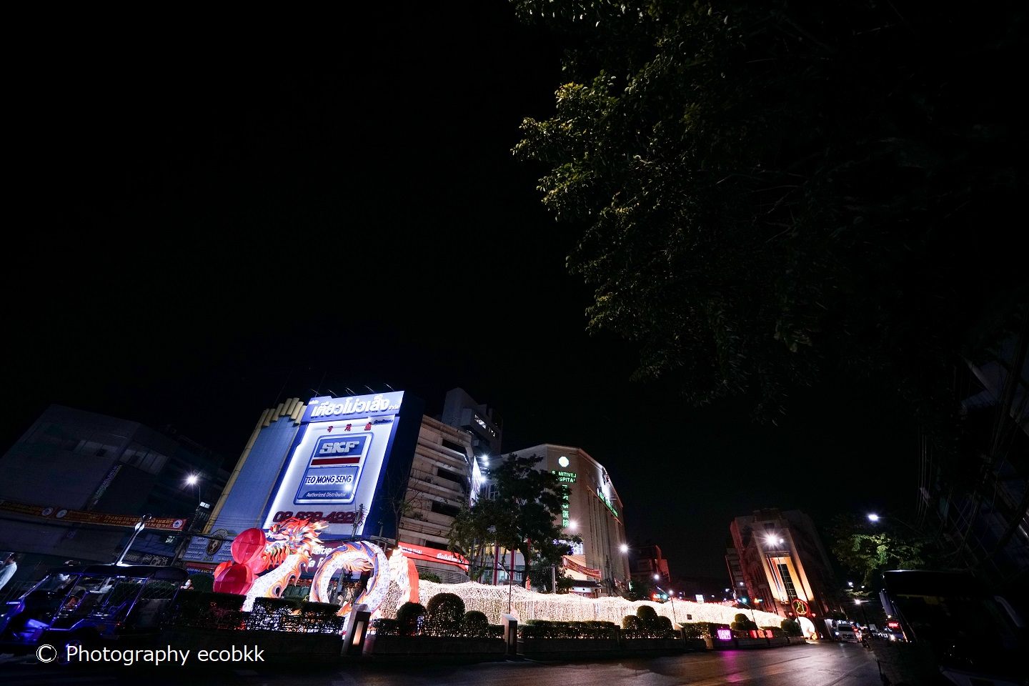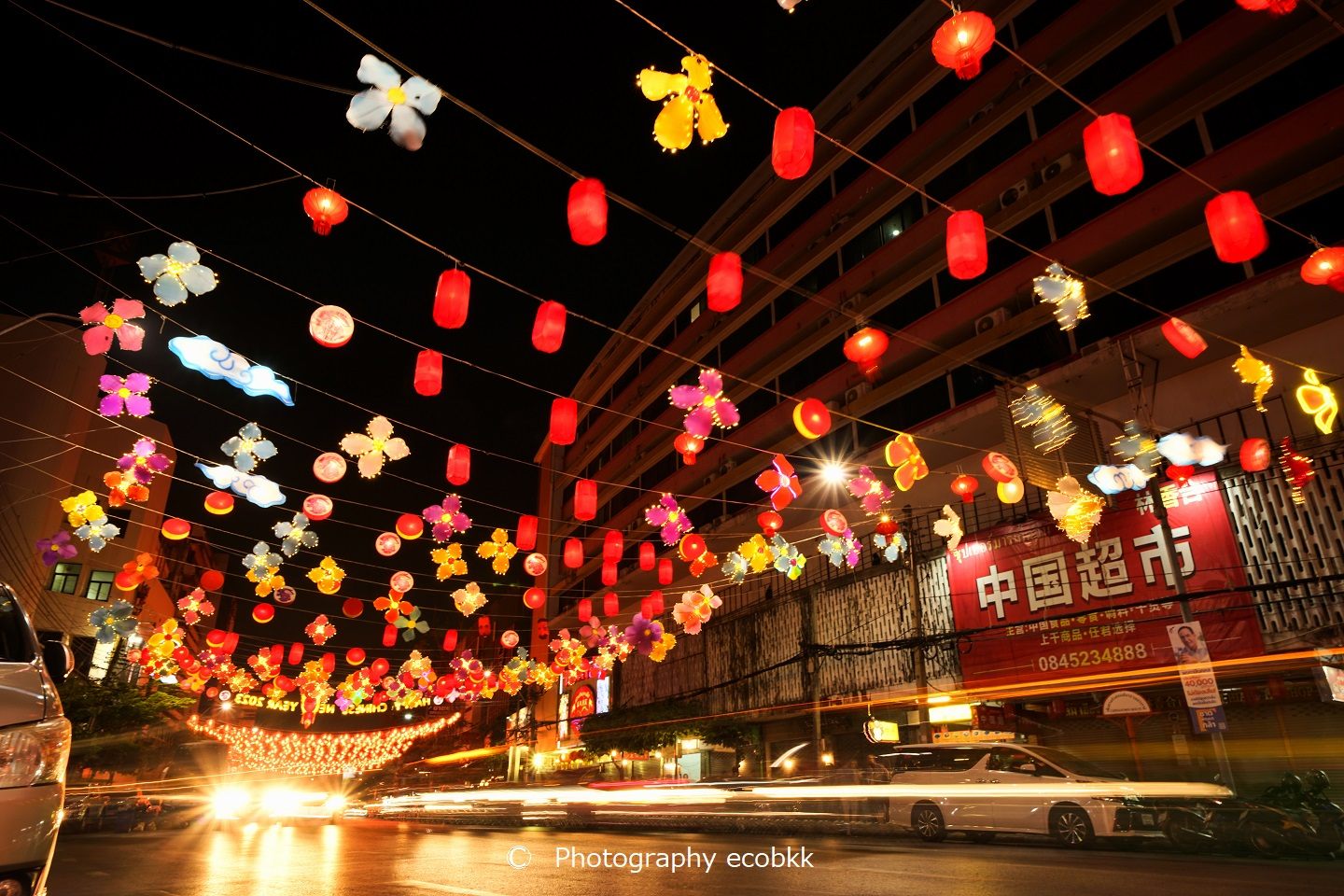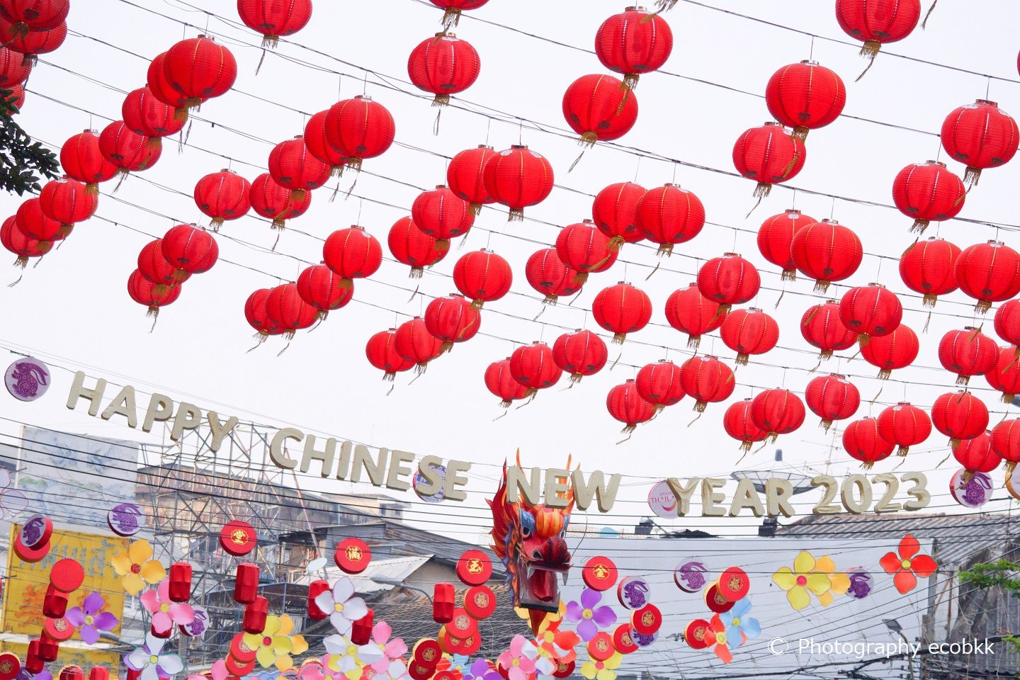 このすぐ左手には、サミティベート・チャイナタウン病院とティアンファー財団クワンイム寺院(Kuan Yim Shrine)が見え、その右斜め前方には、ランタンの大群が見えます。