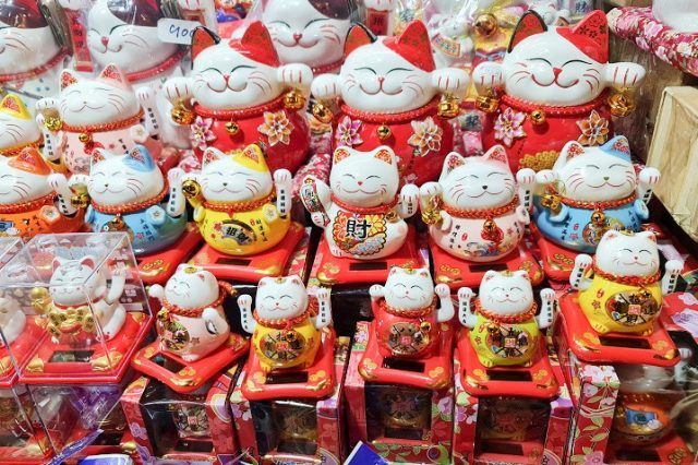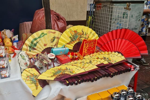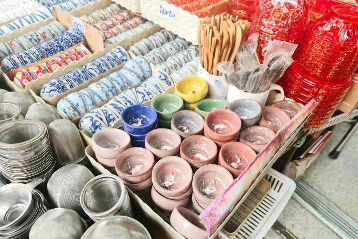 中国の茶器が購入できるお店は他の通りにもありますが、ヤワラー通りにあるヤワラートハンヘンリー(Yawarat Hang Heng Lee Co.ltd)というお店は比較的品揃えが多く、金魚が泳いでいるように見える小さな湯呑カップがとてもかわいいなと思いました。他にも、ヤワラー通りにあるお店では、部屋やカバンに飾る装飾品や指輪、扇子や招き猫グッズ等がたくさん販売されていました。