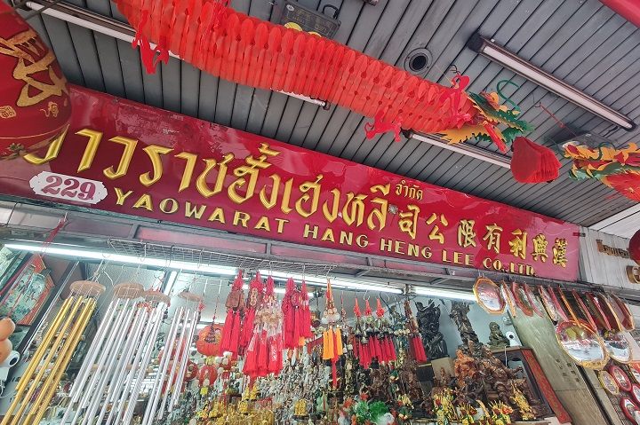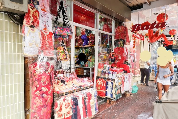 フアランポーン駅からヤワラー通りへ歩いていった場合、ホテルロイヤルバンコク@チャイナタウンを通り過ぎて、1分ほど歩くと、右手に、Nithiya Wanit StoreやThainakonrn.Yaowaratというお店があり、チャイナドレス(2、3着程値段を聞いてみたところ、1着400thb前後~1000thb程)を購入することもできます。このあたりでチャイナドレスを購入して、着替えて、中華街を散策する人も散見します。