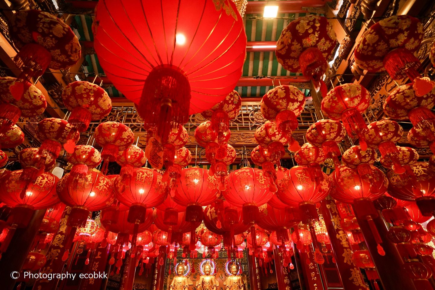 頭上には、たくさんの赤いランタンのエリアもあります。