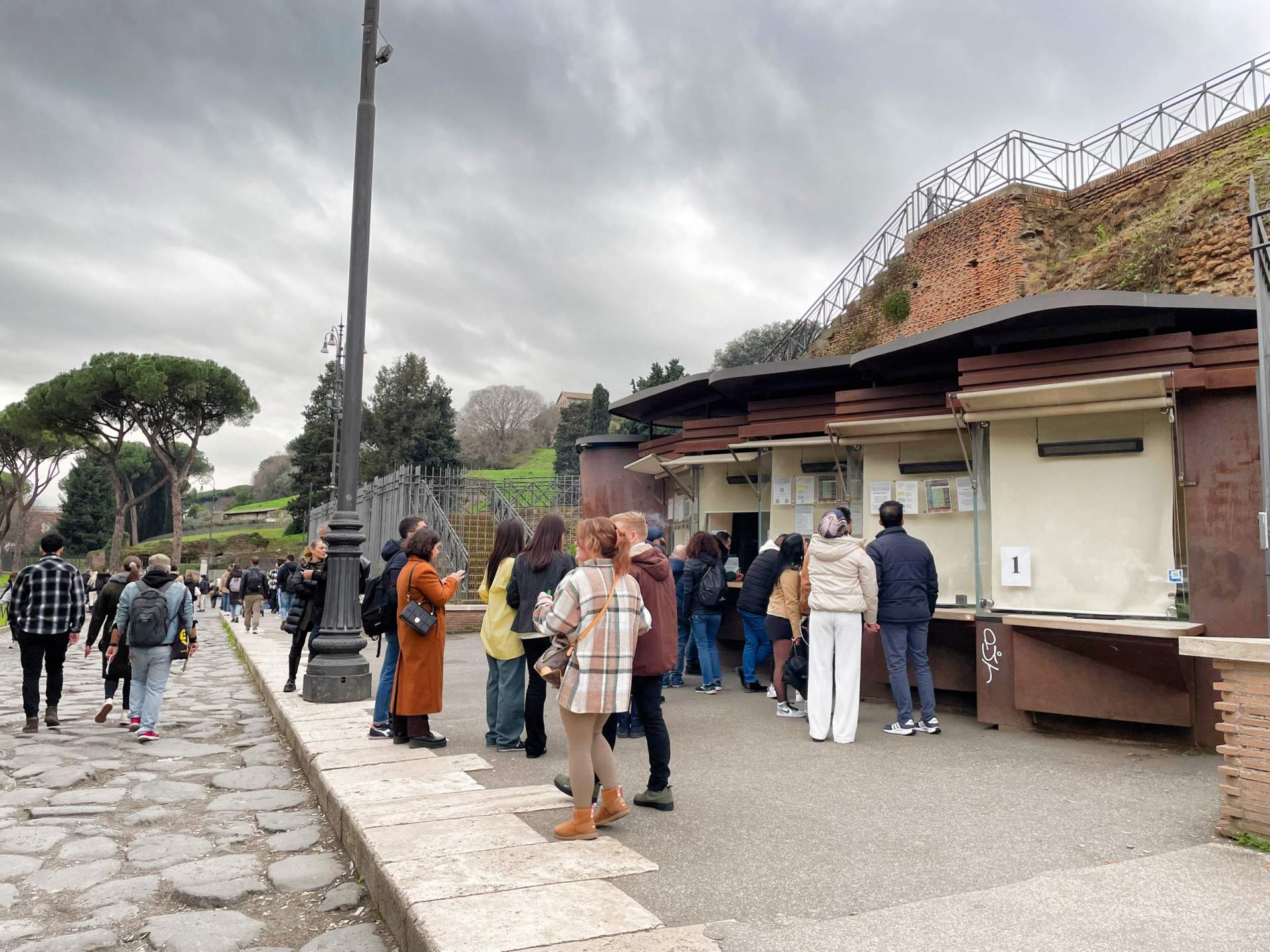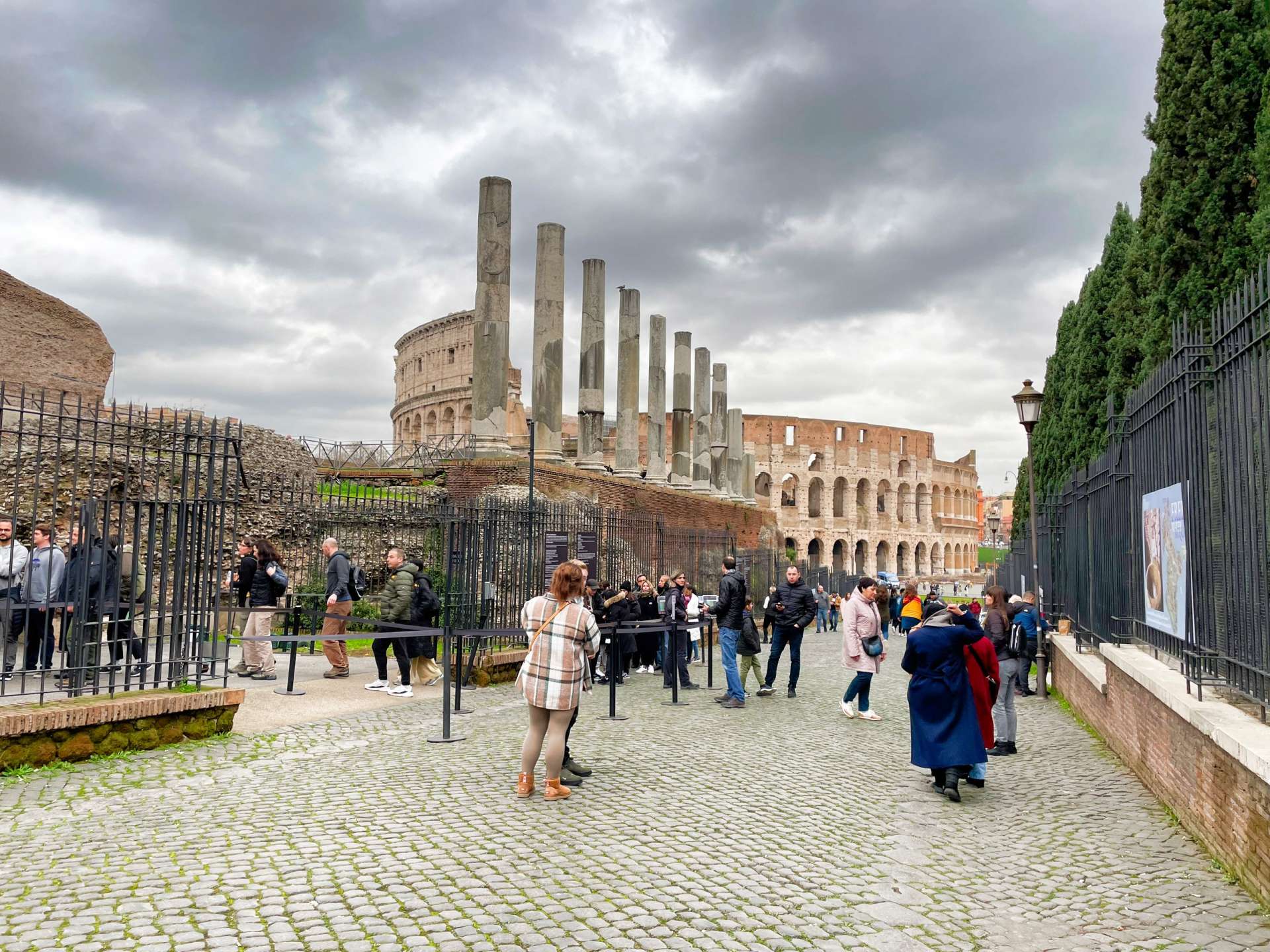 コロナ禍になって3回目の冬となりましたが、先日、初めてこんなにたくさんのお客さんが来ているのを見たように思います。コロッセオの前に、入場者用の入口が、個人客用と団体客用の2レーンに分けて設置されていました。どちらも、お客さんは列を作って並んでいました。そもそもコロナ禍になってから、観光スポットの入場用の列にお客さんが並んでいるのを見ることが珍しいため、とても嬉しく思いました。