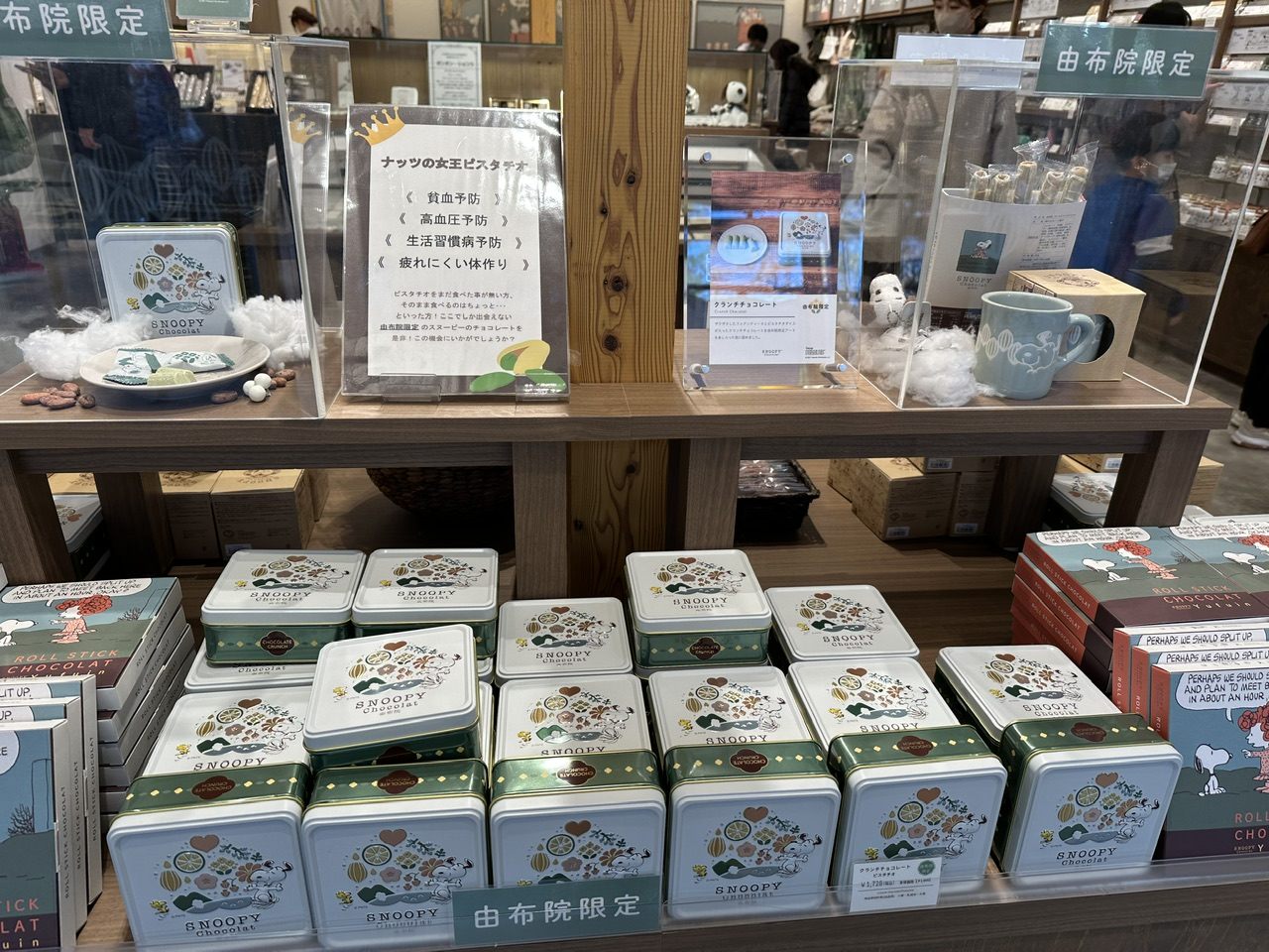 いずれの店舗にも湯布院限定品があり、どれも魅力的ですが今回はなかでもSNOOPY茶屋のショップで、ちょうど探していた子供用の木製汁椀と、掃除がはかどりそうなスヌーピーと仲間たちのイラストが描かれた、カラフルなケースがついたコロコロシートを購入しました。