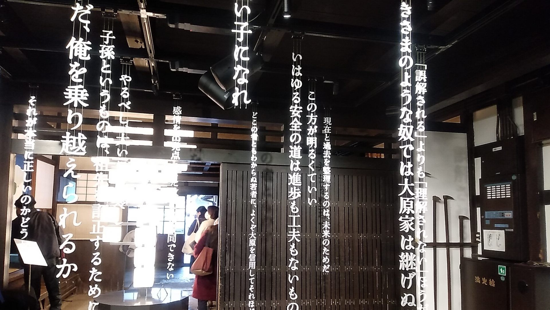 次に入ったのが大原美術館の向かい側にある「語らい座 大原本邸(旧大原家住宅)」です。大原家とは大原美術館、倉敷絹織(現(株)クラレ)の創設者 大原孫三郎、大原家代々が暮らした家で、主屋、離れ座敷、倉8棟が国の重要文化財に指定されるほどの歴史価値のある個人邸です。入り口には大原家の当主の言葉がさがっていました。