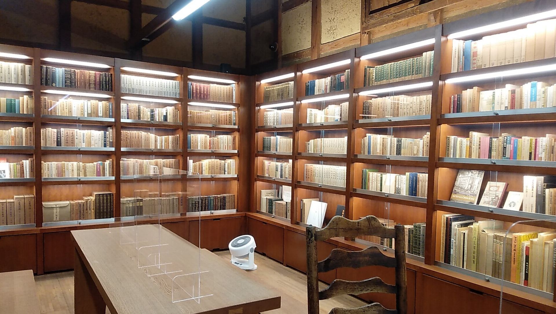 こちらの蔵は、8代目大原總一郎の書斎をイメージしたカフェスペースになっていました。圧巻だったのは、總一郎の好きだった蔵書約2,000冊の展示でした。