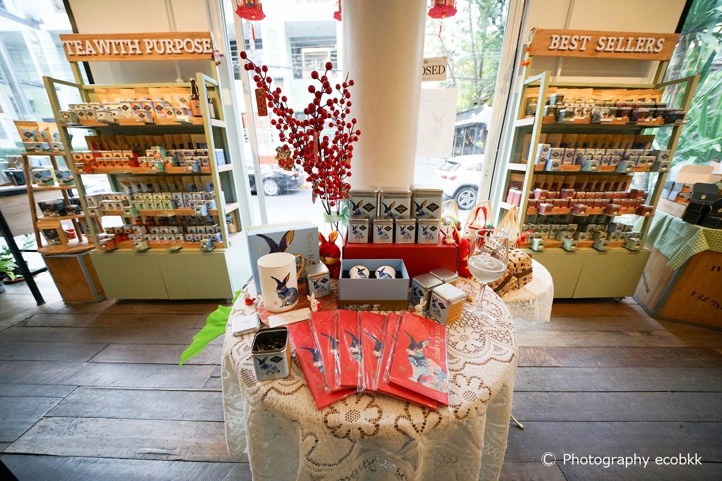 バンコクにある、タイ北部のお茶専門店「MONSOON TEA(モンスーンティー)」アソーク店の店内で、2023年の干支商品が陳列されていました。