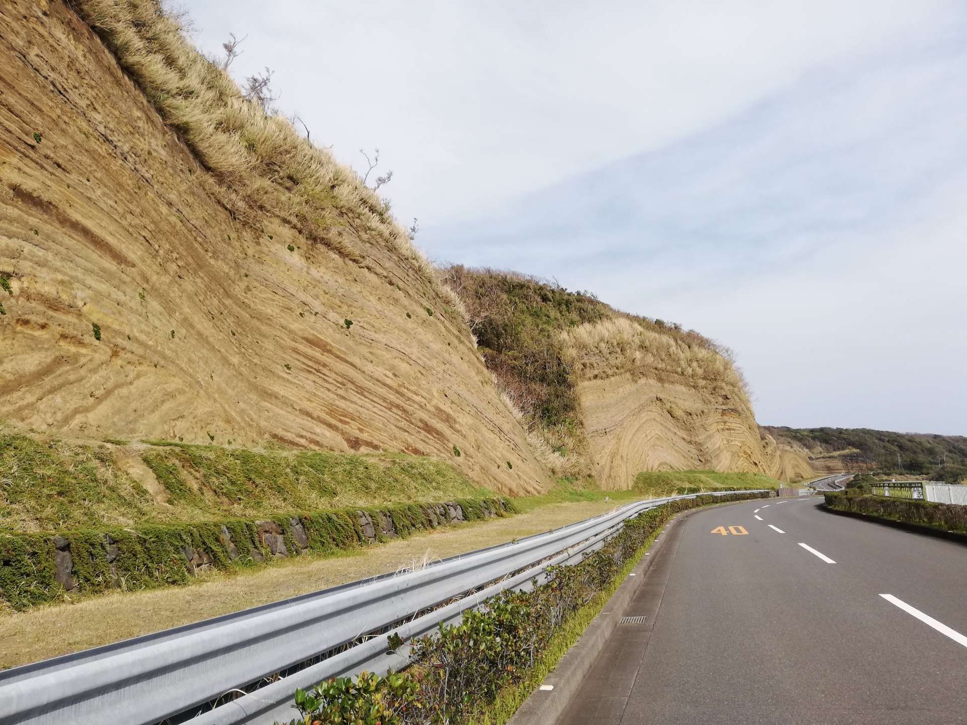 ここは「地層切断面」と呼ばれ、大島一周道路の建設工事中に偶然発見されたものとのことです。