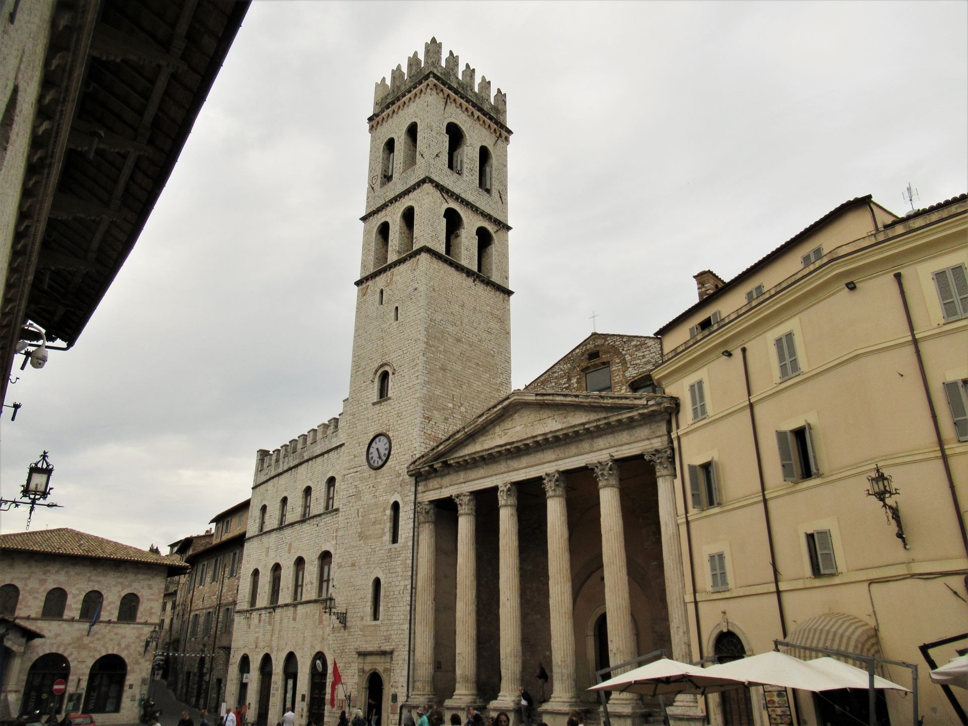 ローマ時代の建造物である「ミネルヴァ神殿」。その後12世紀~13世紀に建てられた「ポポロの塔」や、現在は市庁舎となっている「プリオーリ宮」など、歴史を感じる建物に囲まれています。