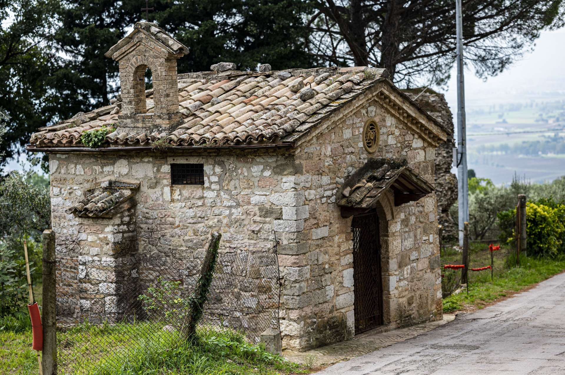 「サン・ダミアーノ教会」へ歩く道の途中で見かけた小さな教会。まるで、お菓子の家のようでした。